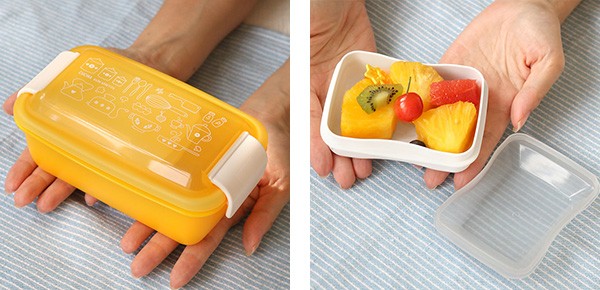 1段のお弁当箱としてお使いいただくと、約560〜670mlまで入ります。蓋の空間まで盛って容量アップ!また、下の段は電子レンジで温めたいおかずやごはんを詰めて、中皿にはフルーツやサラダを分けて詰めることのできる優れものです。