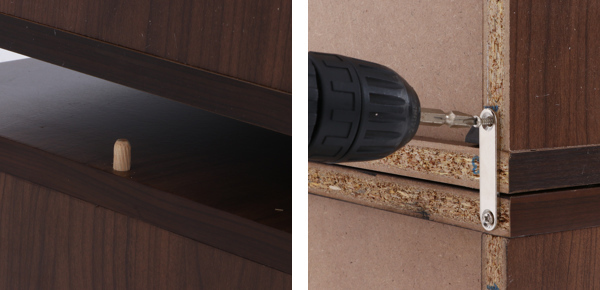 付属の上下連結用木ダボで上に積み重ねる事もでき、背面は連結金具でしっかり固定できます。
