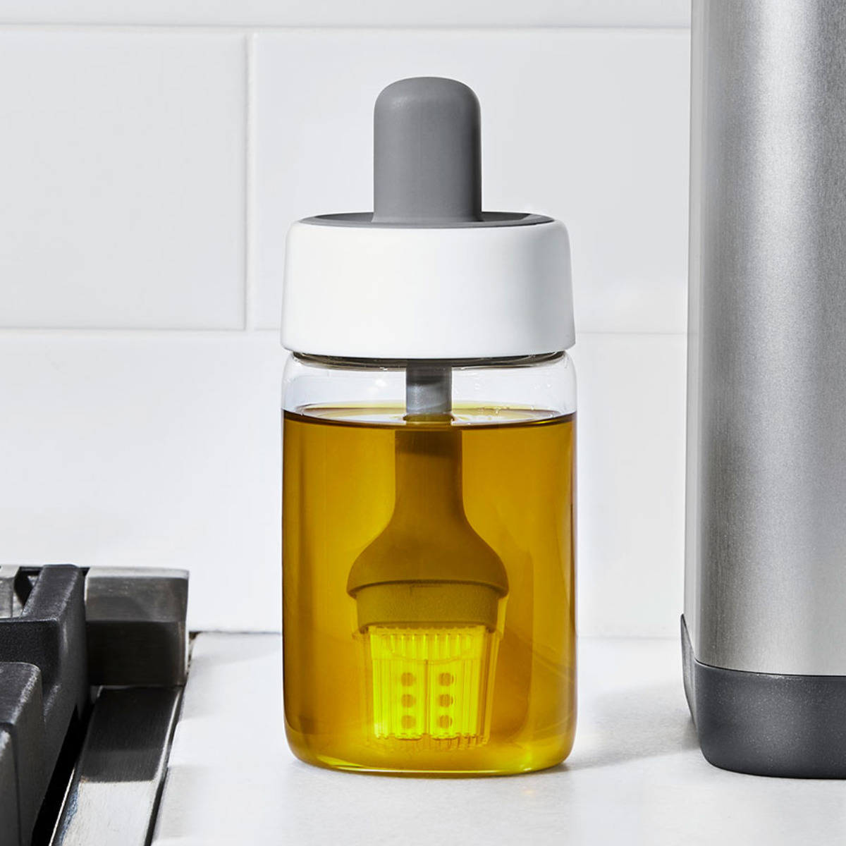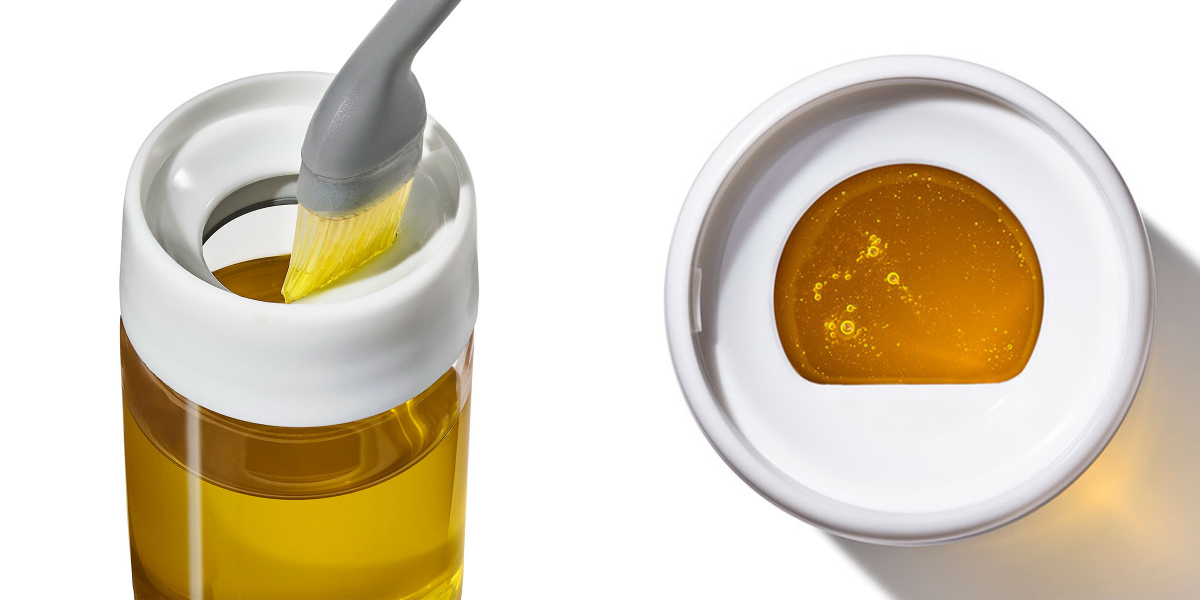 ブラシとフタが一体型になった、便利なオイルボトルです。容器のフチで余分な油を落とせるので、使う量の調整ができ、ヘルシーかつ経済的です。ブラシを容器の中に入れたまま保管できるので、毎回洗う必要がなく楽ちんです。