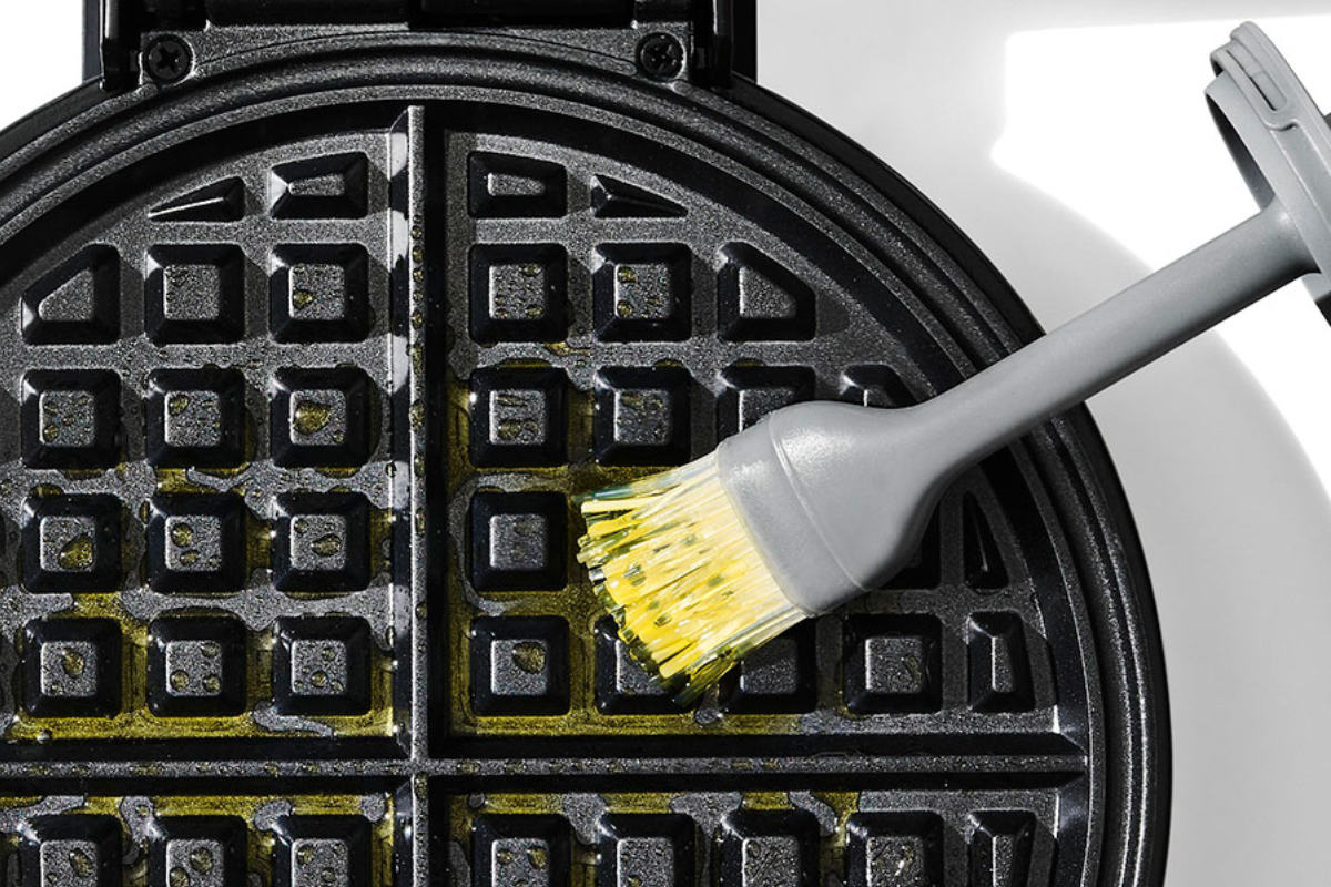 ブラシはシリコン製なので、フライパンやホットプレートを傷つけにくいです。ワッフルプレートなど凹凸の多いプレートでも、ささっと油を塗り広げることができます。