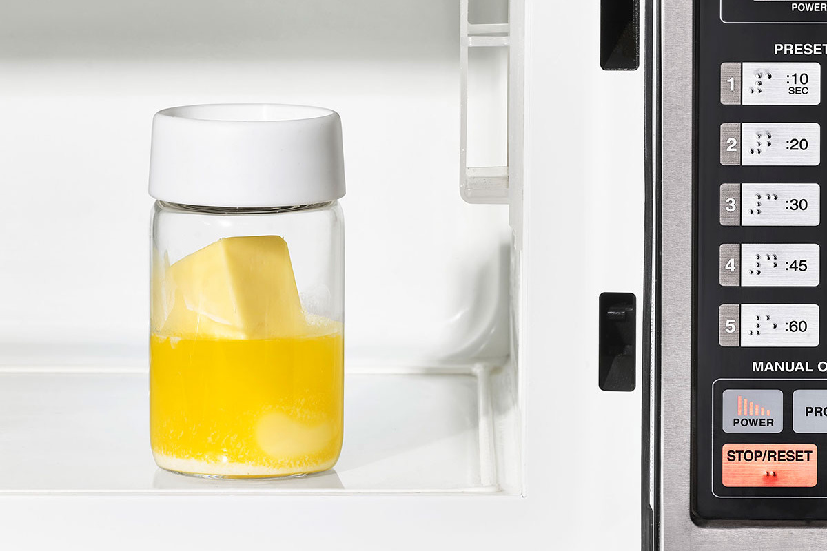 ガラスボトル本体は電子レンジに対応しているので、バターを入れて温めれば簡単に溶かしバターが作れます。