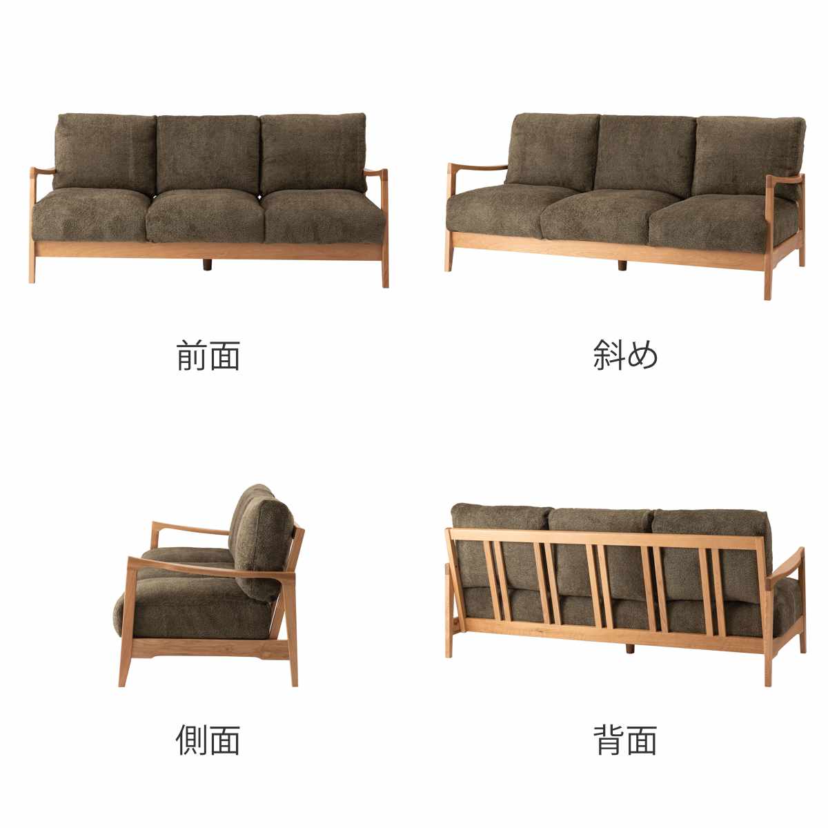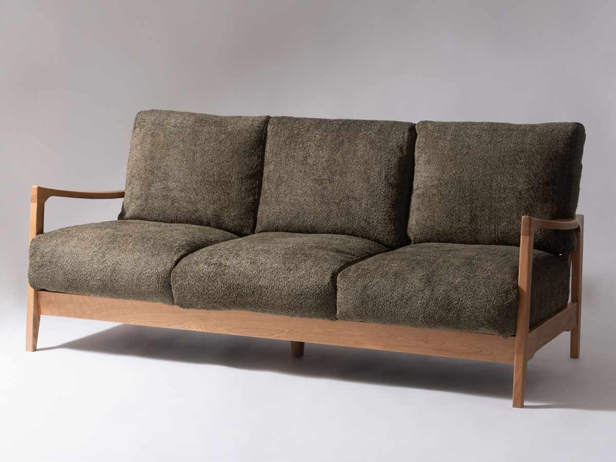 天然木フレームのゆったりソファ 3人掛け