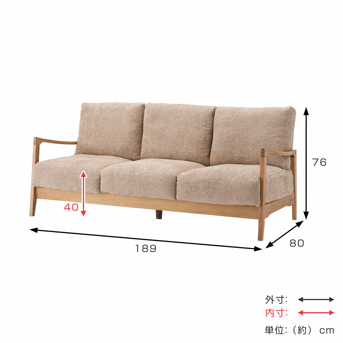 サイズ/約幅189×奥行80×高さ76cm
