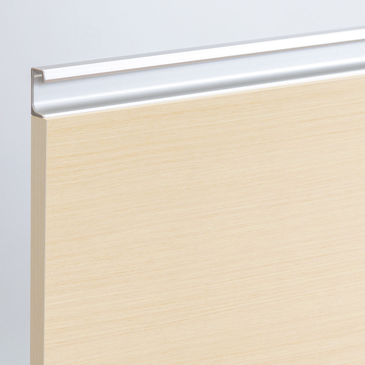 シルバーカラーのスタイリッシュなラインハンドルです。つかみやすく、面取り処理済みなので安心してお使いいただけます。