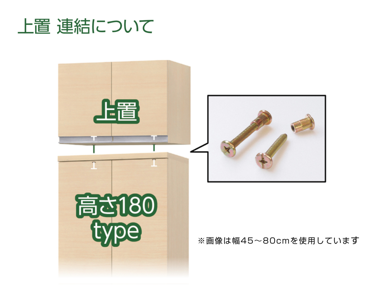 180typeシューズボックスと上置き棚は、ボルトとナットを使って2箇所で連結します。
