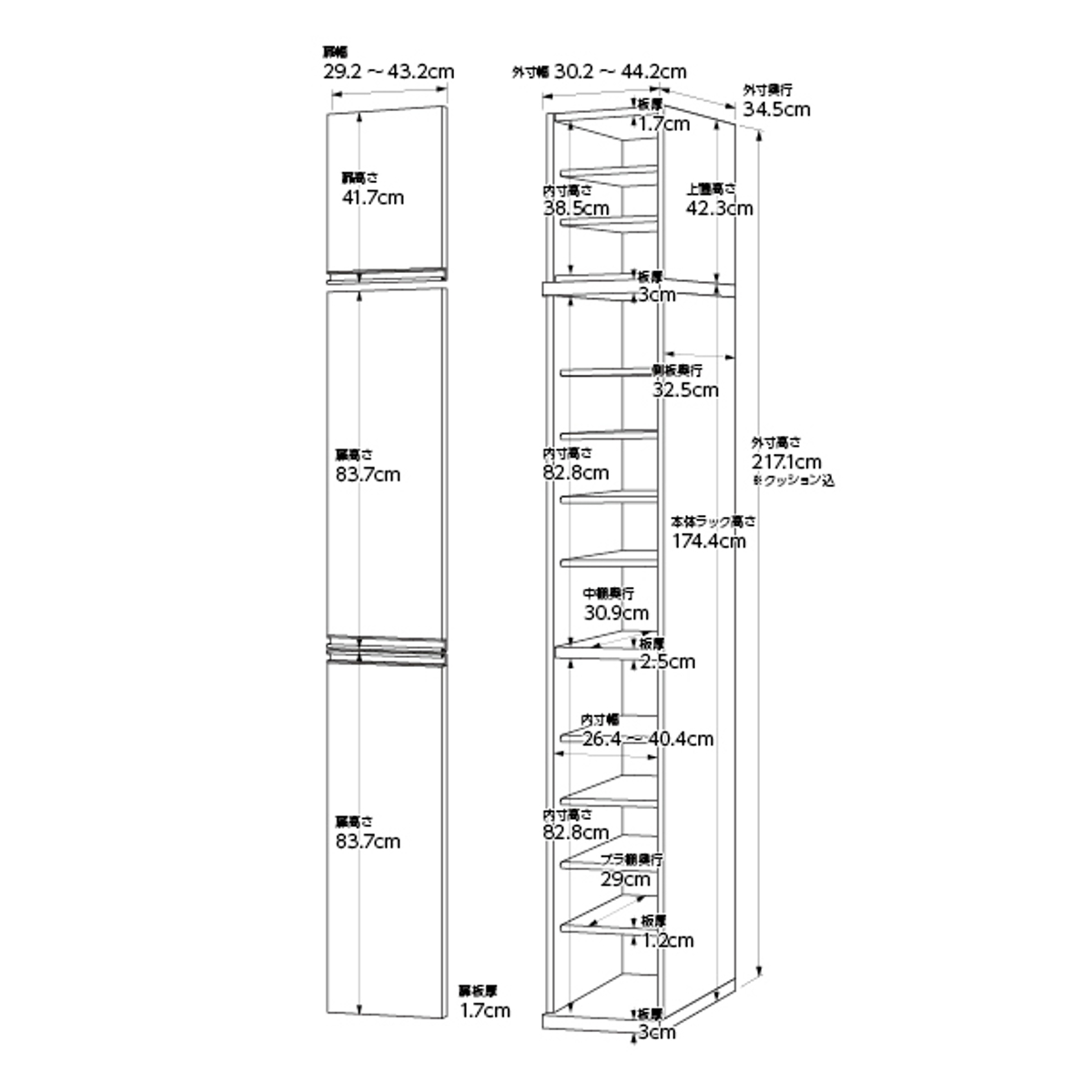 サイズ/約幅30.2〜44.2×奥行34.5×217.1cm