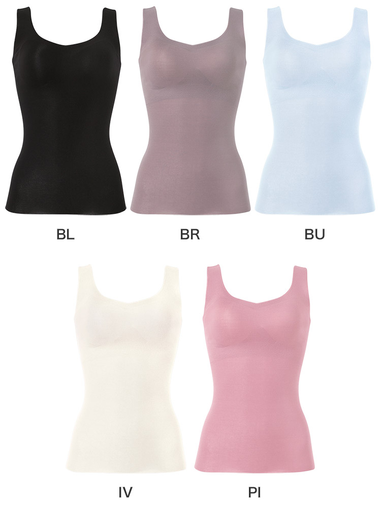 綿混素材を使用した、肌ざわりがやさしいラウンドタイプのブラキャミソール。