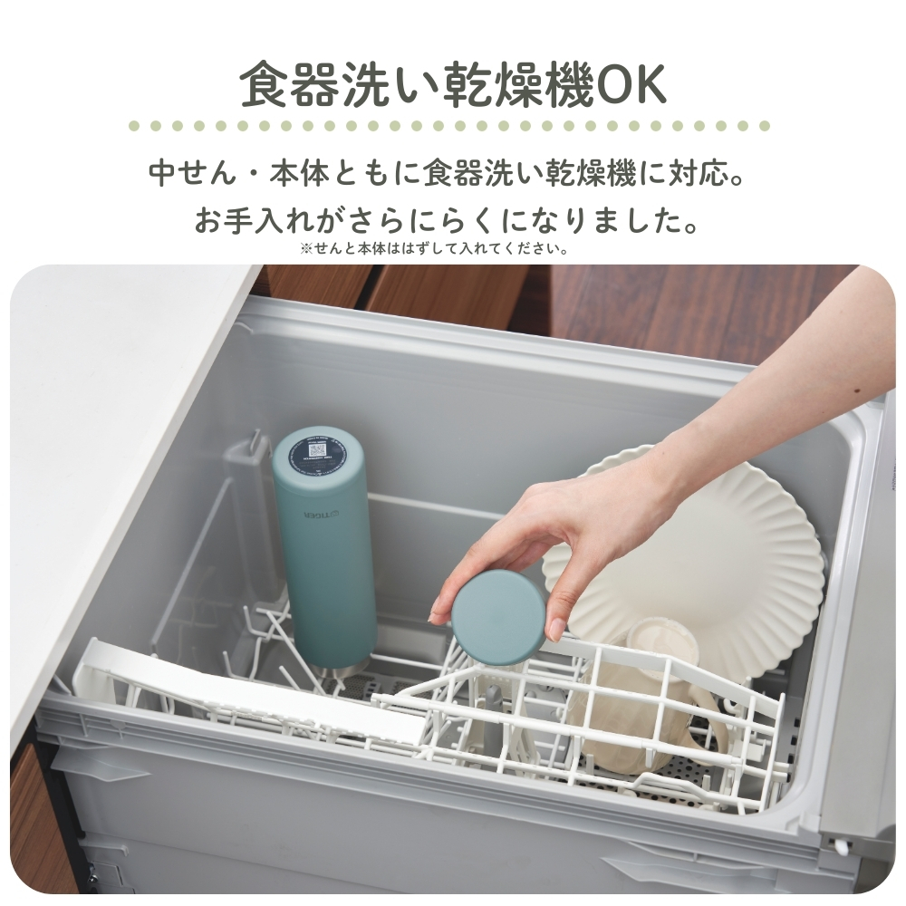 パッキン一体型せん「らくらくキャップ」と食洗機対応でお手入れ