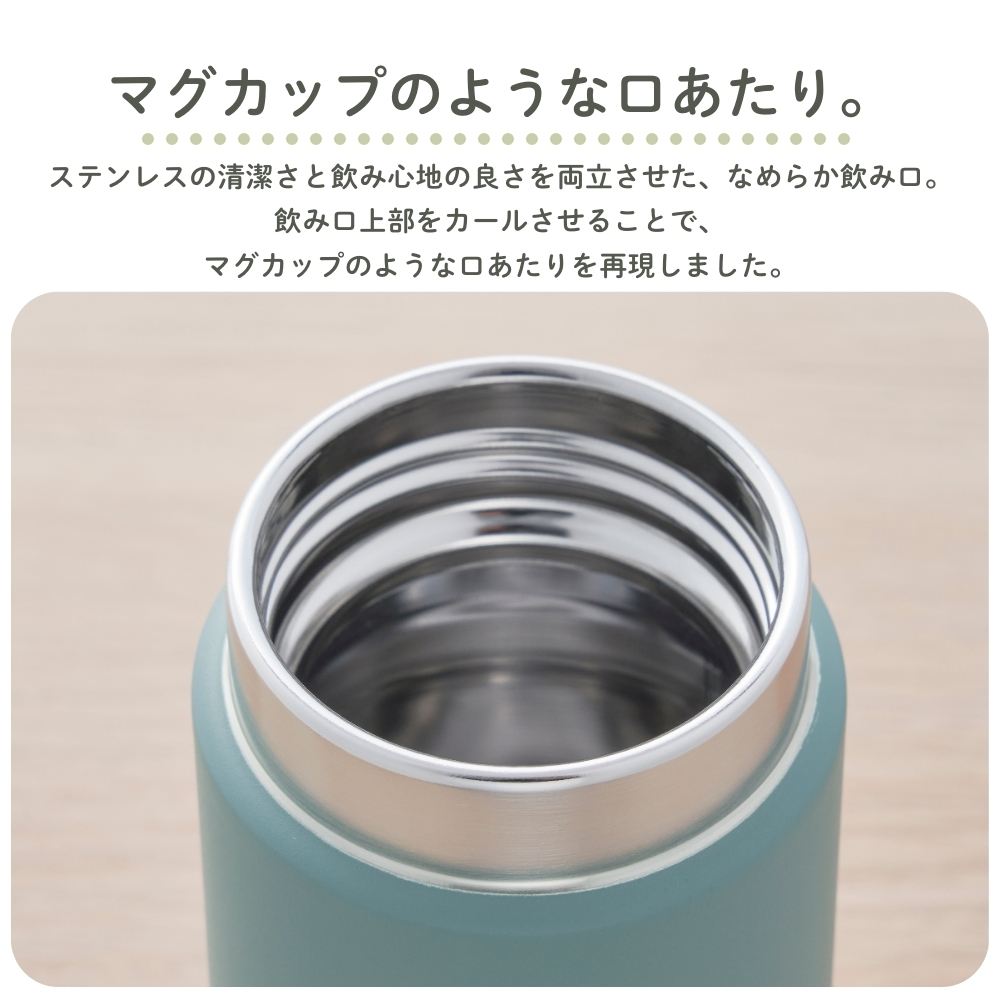 ステンレスの清潔さと飲み心地の良さを両立させた、なめらか飲み口。