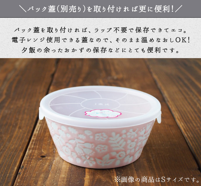 別売りしているパック蓋を取付する事で、ラップ不要でエコな保存容器に!レンジ使用OKなので、保存から温めまでそのまま使えて便利です!