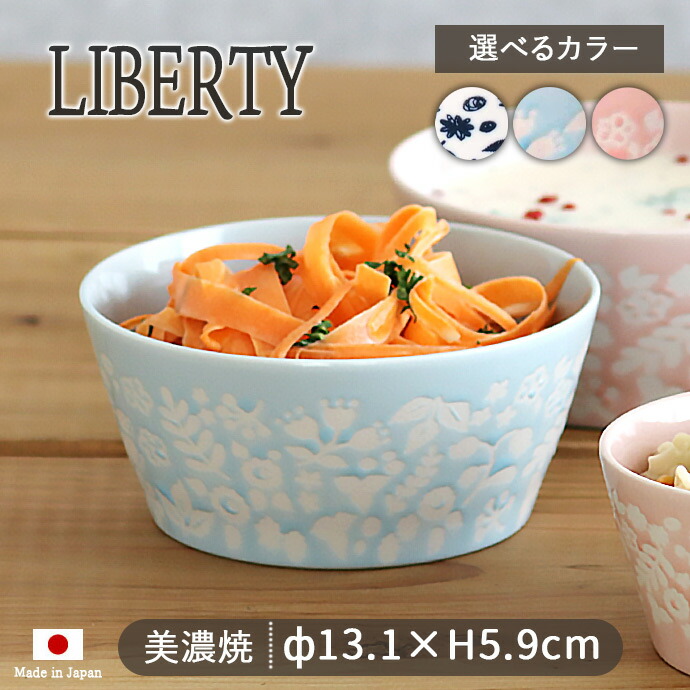 小鉢 ボウル 美濃焼 陶磁器 LIBERTY 軽量 切立 M 呉須 径13.1cm 470ml ナチュラル ボタニカル 白 紺 日本製 レンジOK 食洗機OK 爆買 母の日
