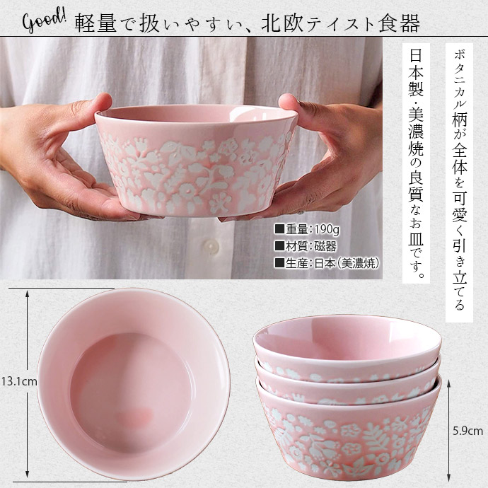 北欧風の植物をモチーフとした柄で、切立の形状がスタイリッシュでスタッキングもしやすい。優しい色とナチュラルな雰囲気が食卓をおしゃれに飾ってくれます。