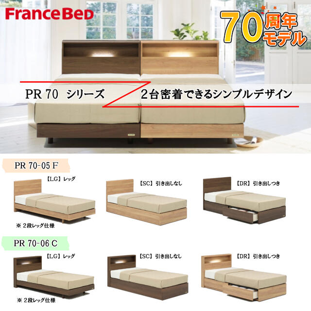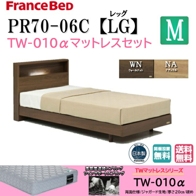 フランスベッド お買い得ベッド セミダブル ベッドセットPR70-06C LGフレーム(レッグタイプ) TW010αマットセット 硬め キャビネット コンセント 開梱設置