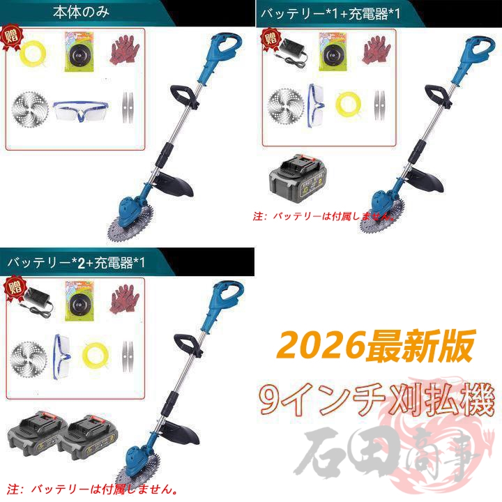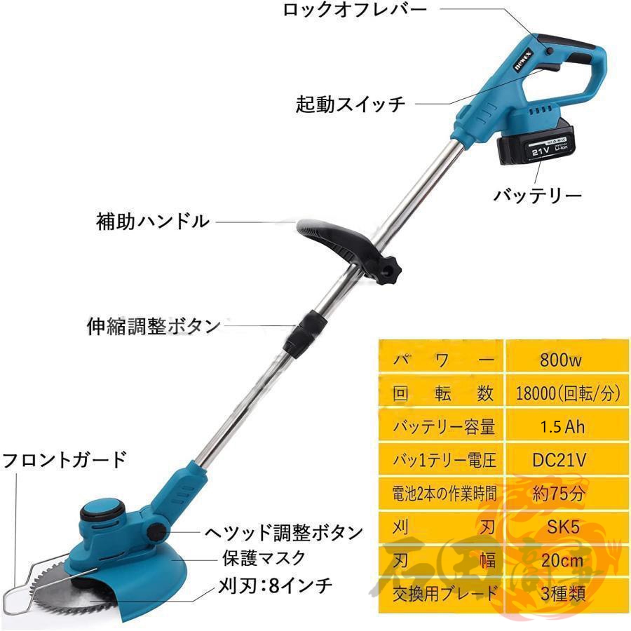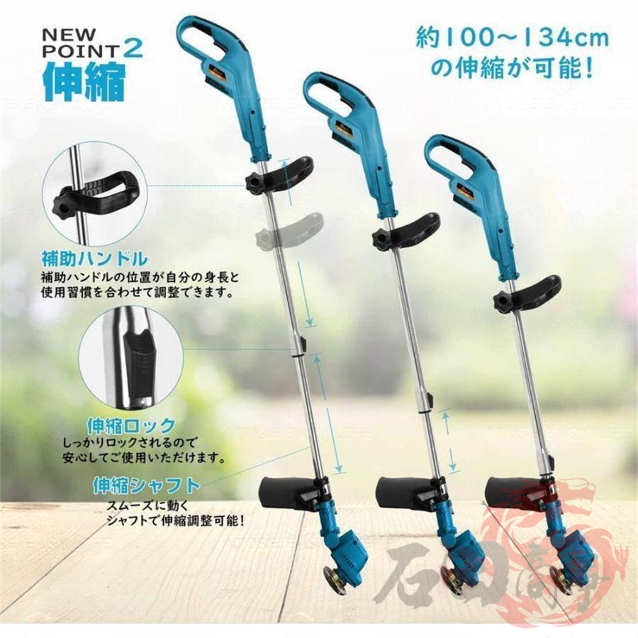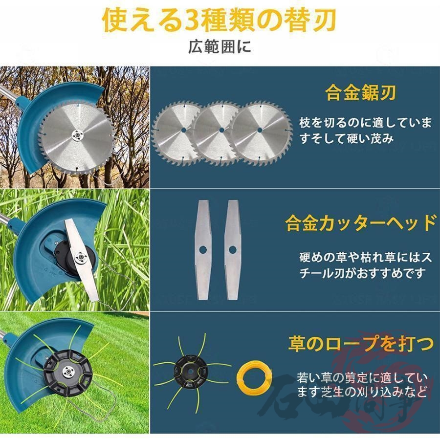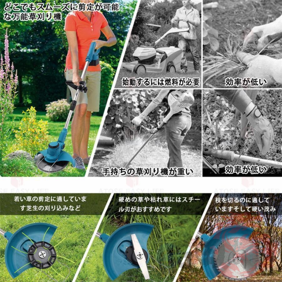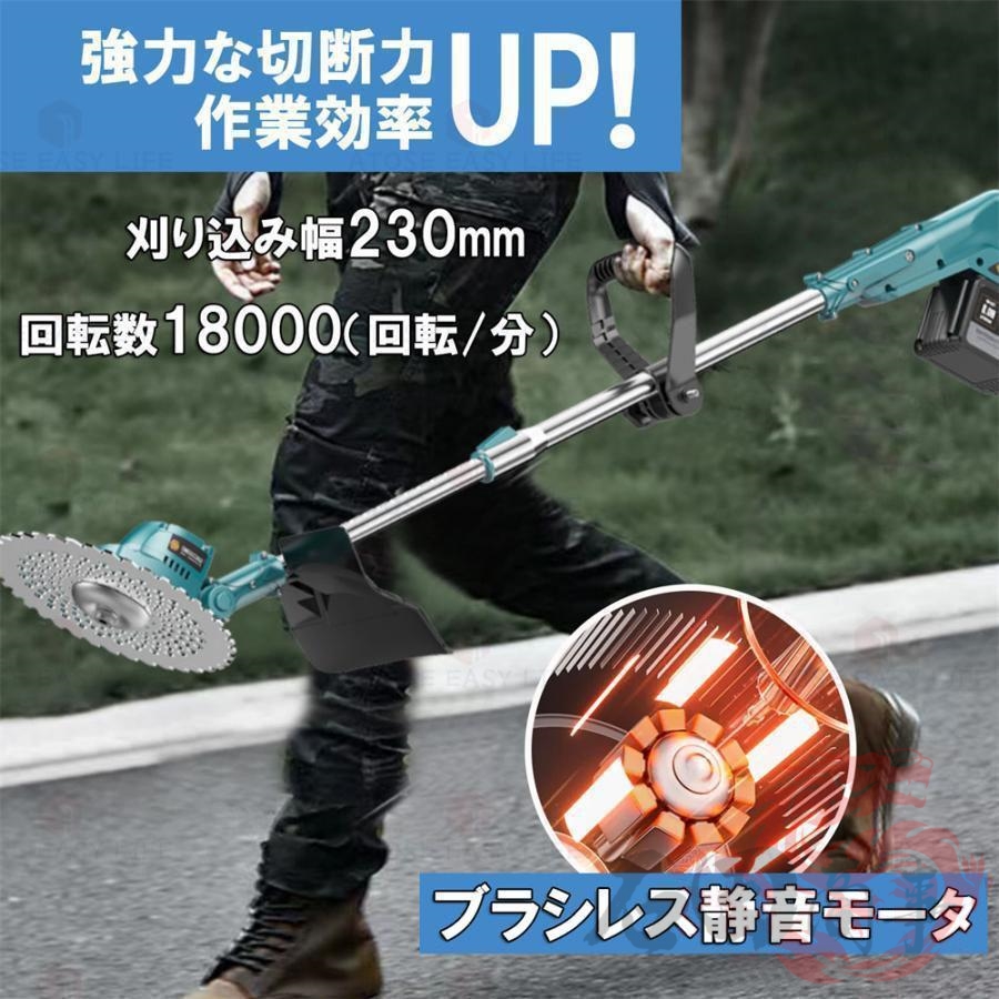 草刈機 充電式 草刈り機 バッテリー互換 電動刈払機 伸縮式 角度調整 コードレス グラストリマー 替え刃付き 枝切り 軽量 敷地 雑草 女性 家庭用 初心者も対応