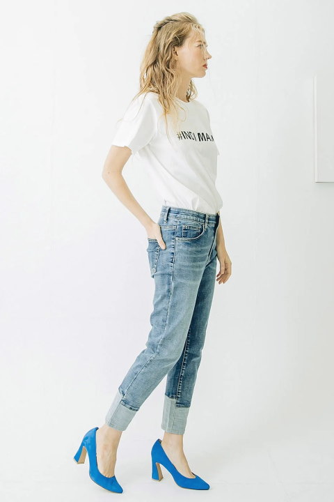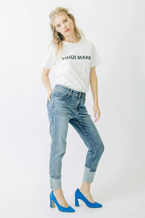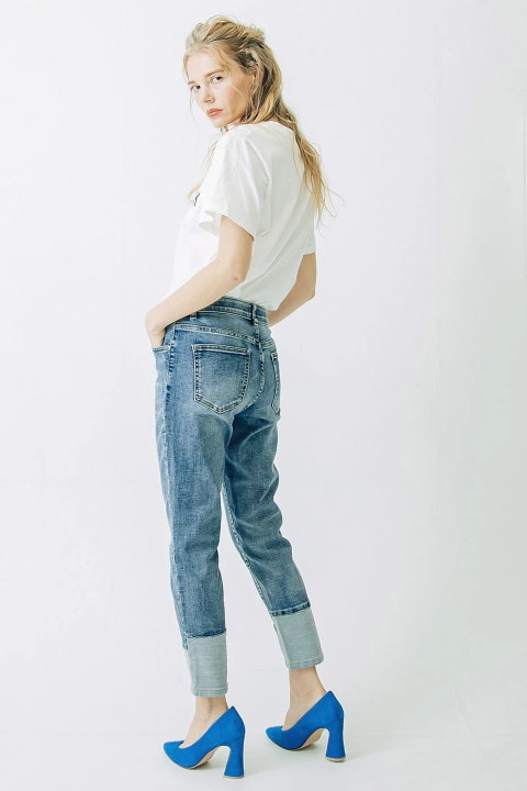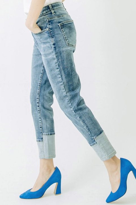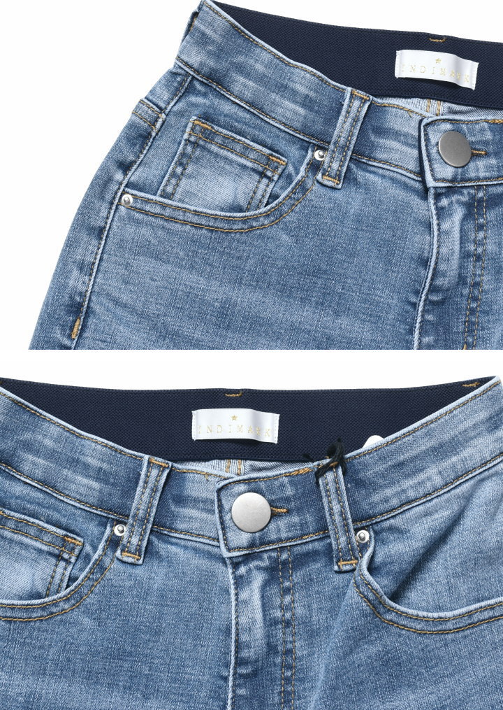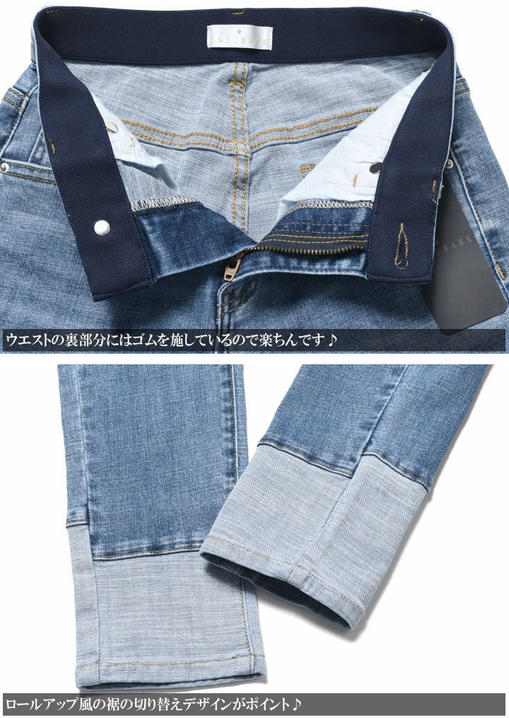★ロールアップ風の裾の切り替えデザインがお洒落なインディマークを代表するボーイフレンド・デニム♪