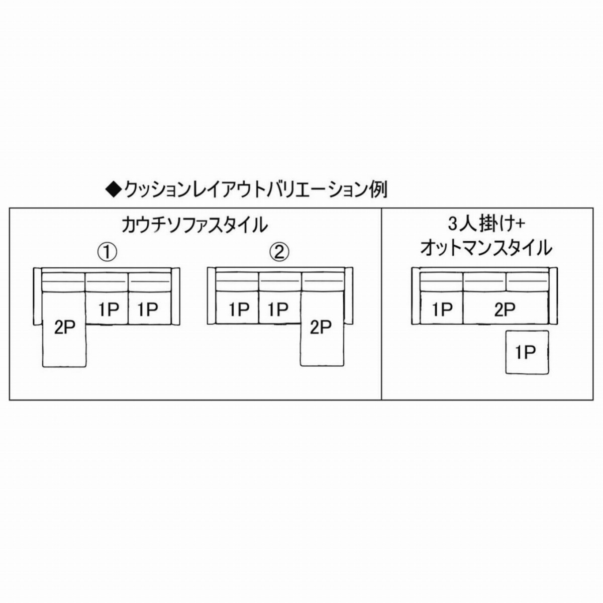 ソファ+スツールに3パターン組み替えが可能。