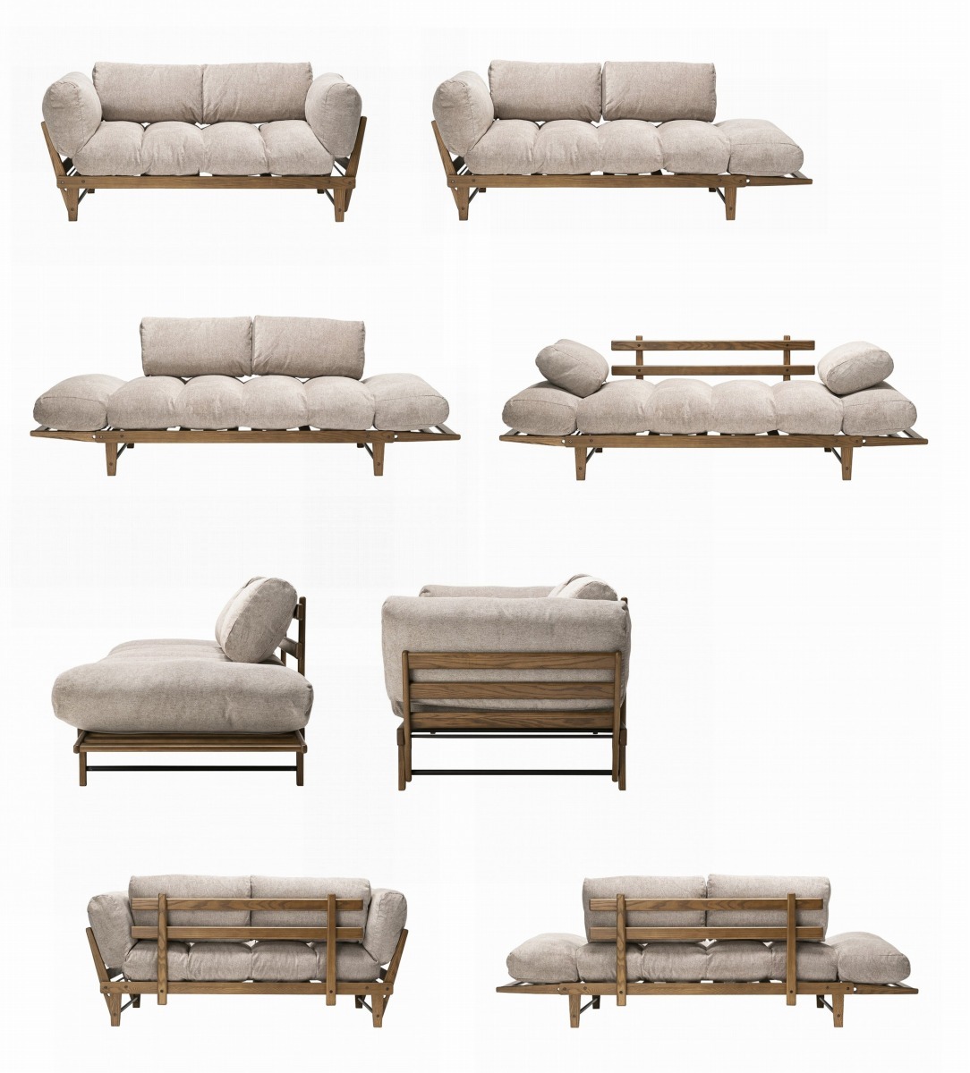 通常のソファベッドはワイド寸法はそのままで奥行きが広がるものが多いですが、