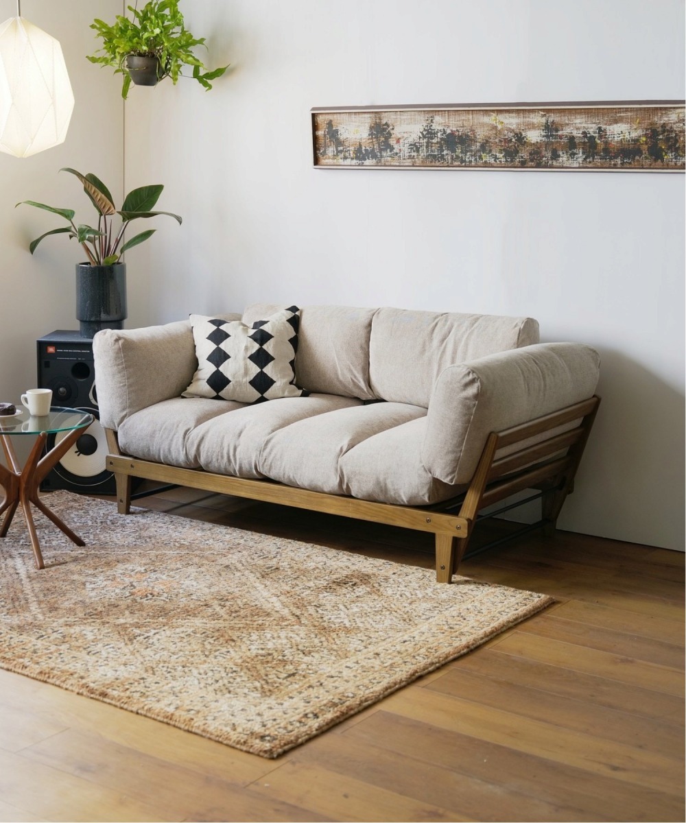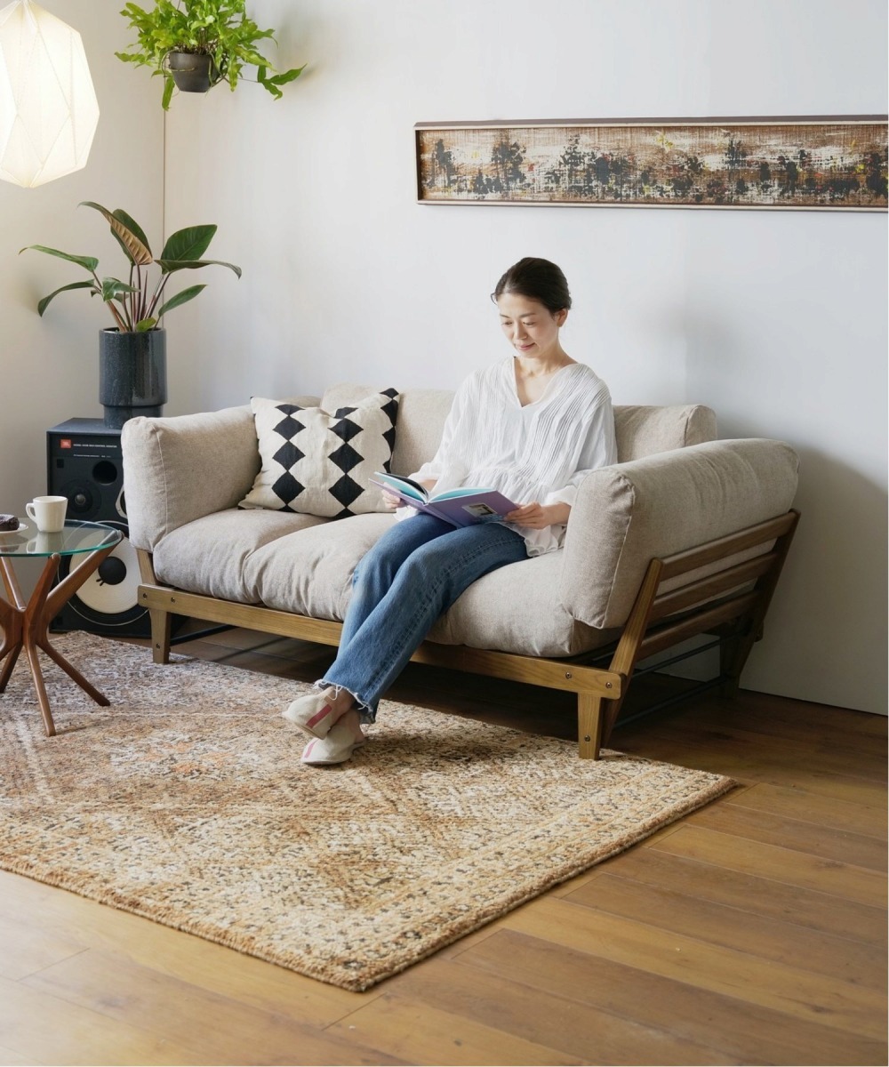 このソファは通常使用の場合W1570とコンパクトなのが特徴。