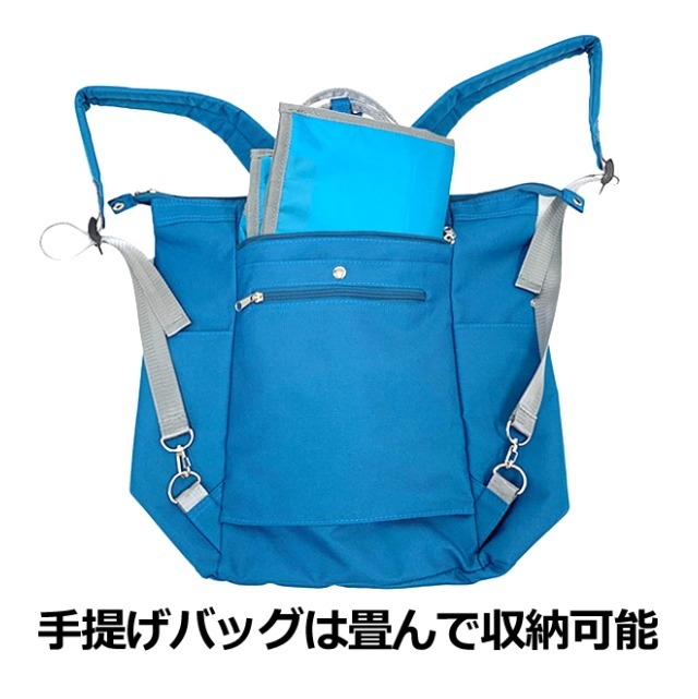 リュック内に取り外し可能な保温保冷の手さげバッグが付いている多機能リュック。