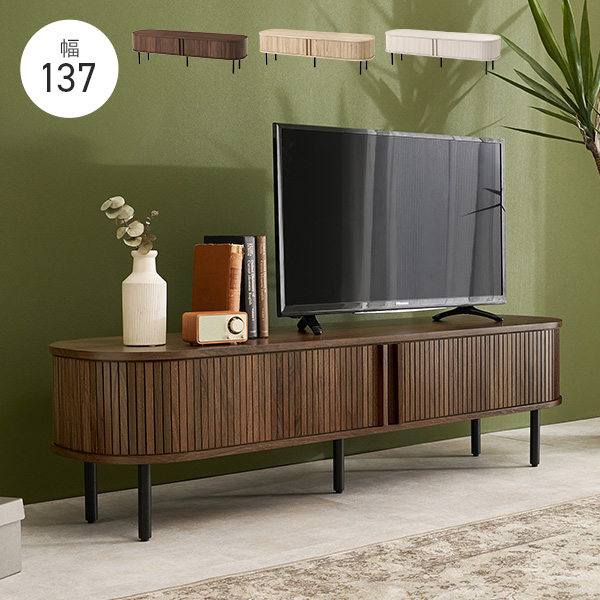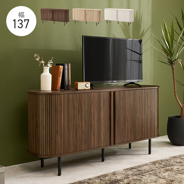 テレビ台 ローボード おしゃれ テレビボード 収納 TV台 蛇腹扉 収納 TVボード 白 リビングボード 可動棚 タンブールドア じゃばら 幅137cm ロー ルーヴァ