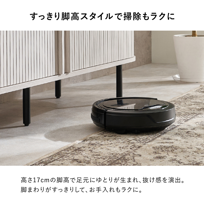 脚高設計なのでお掃除ロボットも通りやすく、お掃除もラクラク。