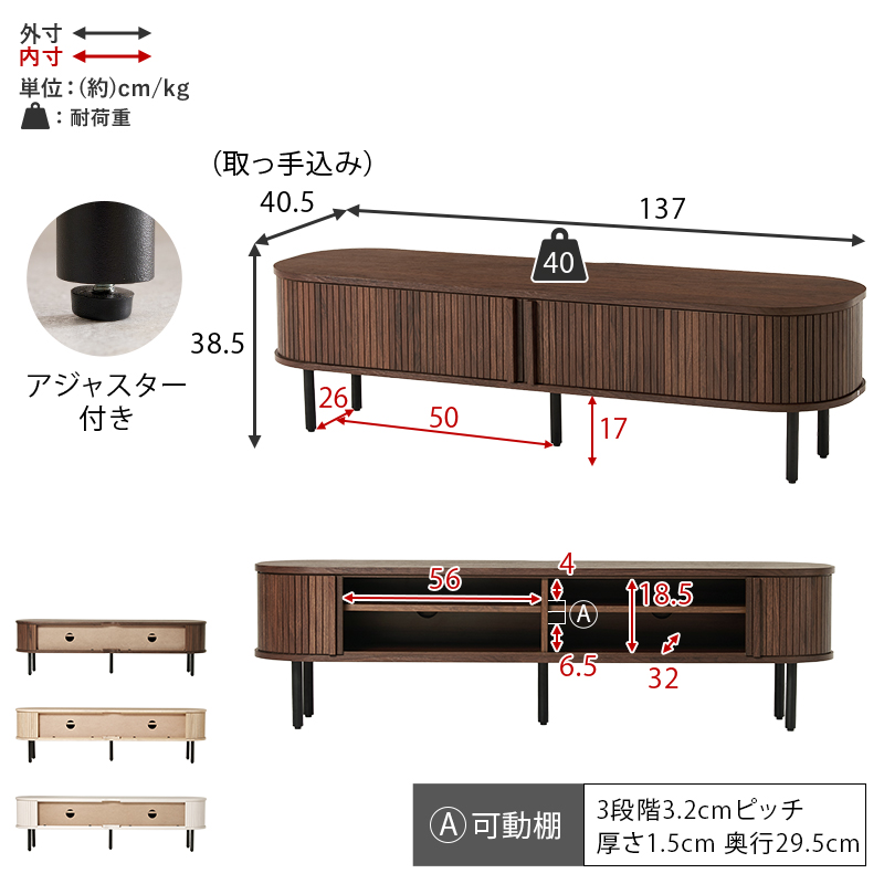 【商品サイズ(約)】幅137×奥行40.5×高さ38.5cm