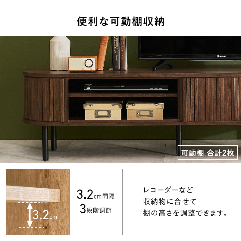 収納したい物(AV機器/レコーダー/DVD/CDなど)に合わせて高さが変えられるところもポイント。