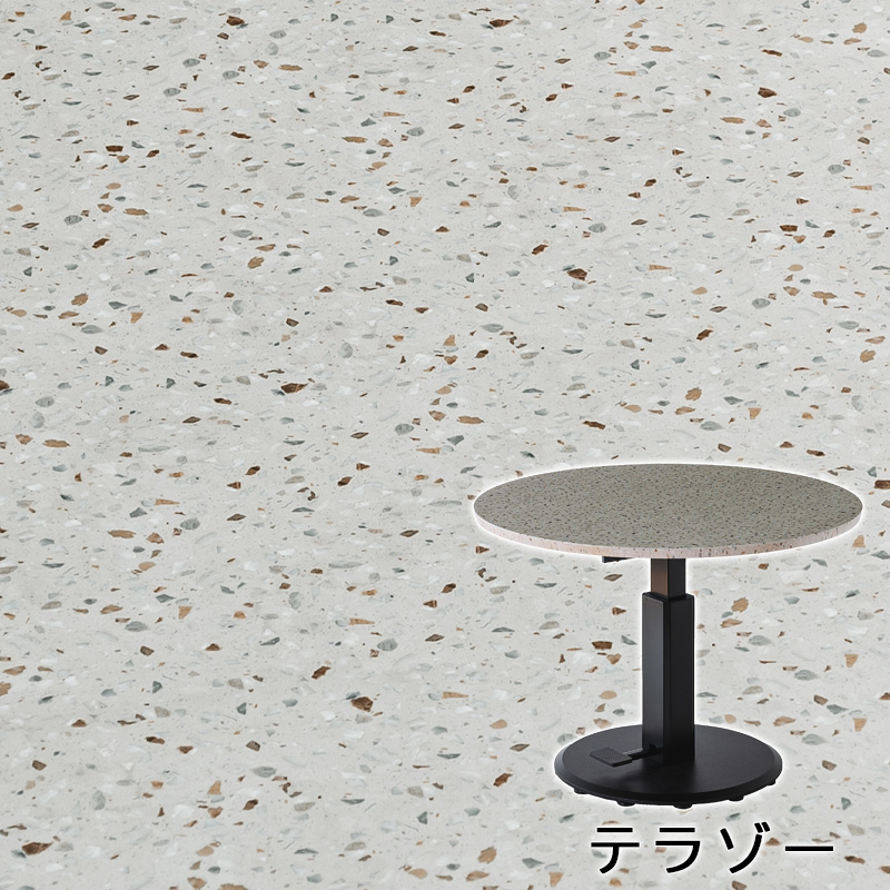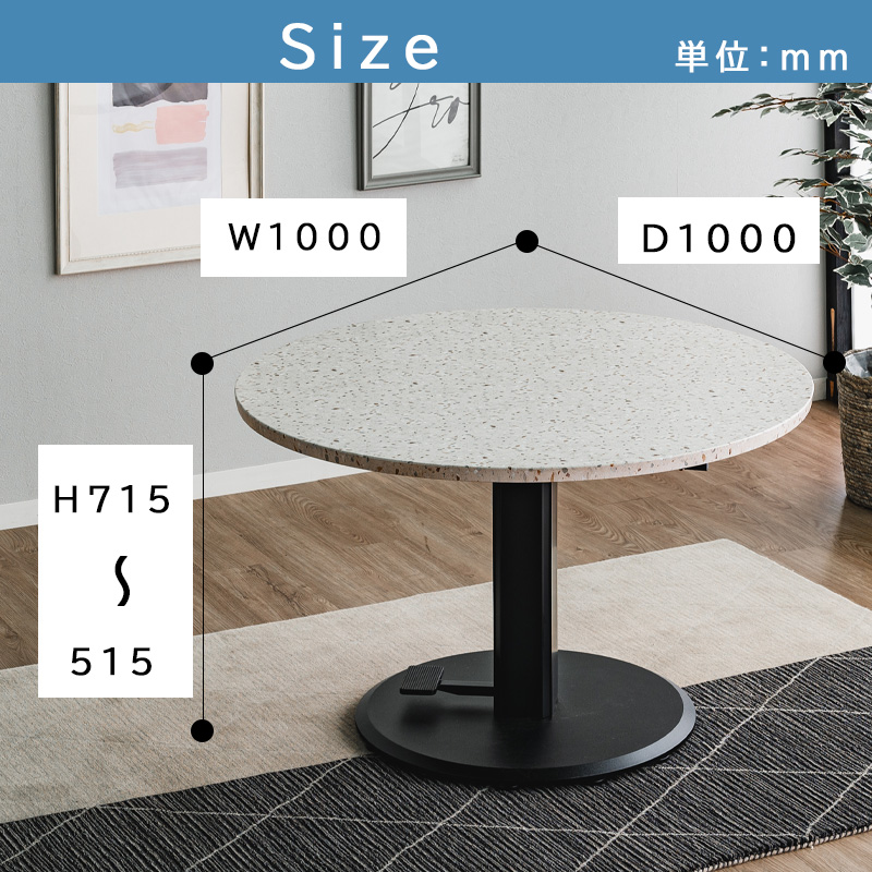 昇降テーブル 丸型 テーブル 円 100×100 昇降式 ダイニングテーブル 昇降テーブル 無段階 高さ調節 ペダル ガス圧式 丸型昇降テーブル DW-1000 MBR GY テラゾー