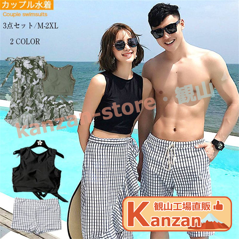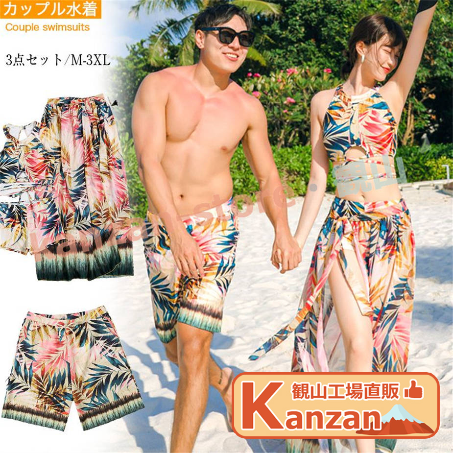 水着 ペアルック カップル水着 レディース メンズ 花柄パッド付き メンズ水着 男性用 ビーチパンツ サーフパンツ みずぎ ミズギ 男女