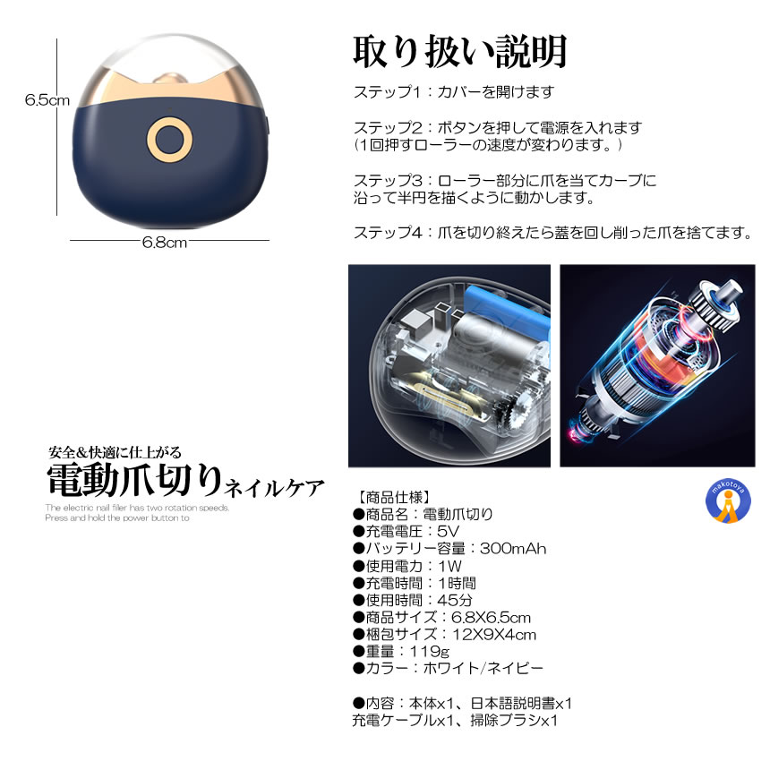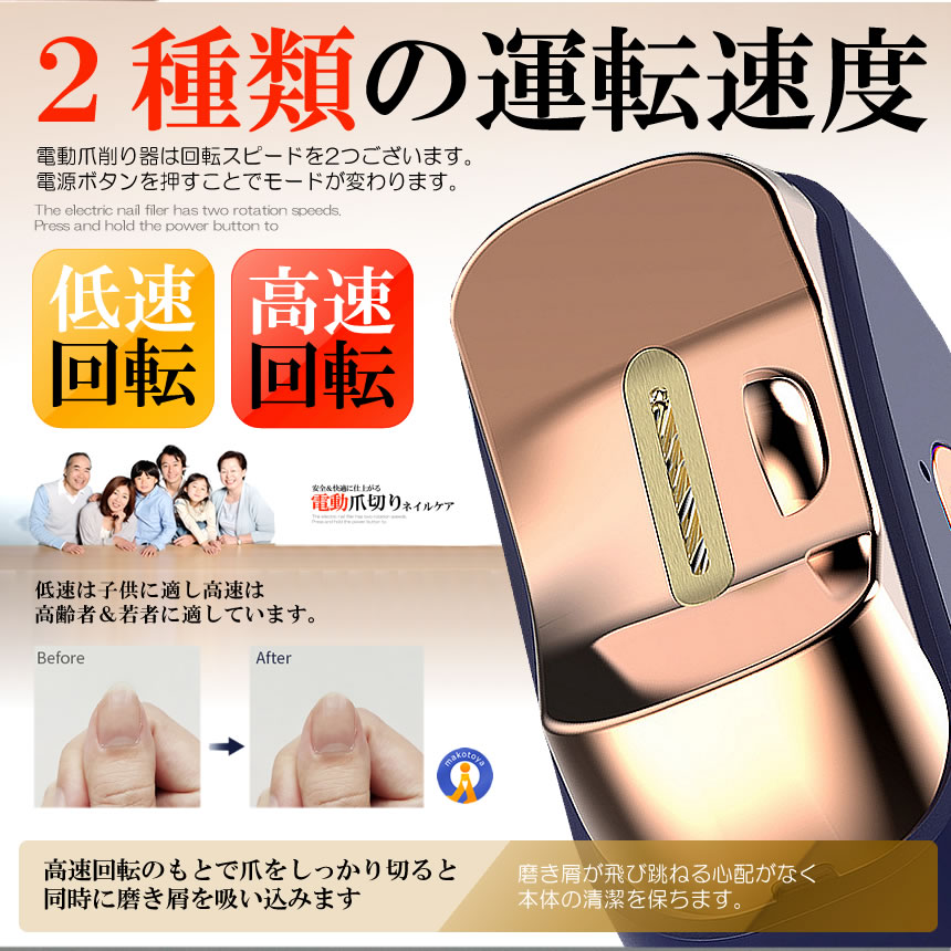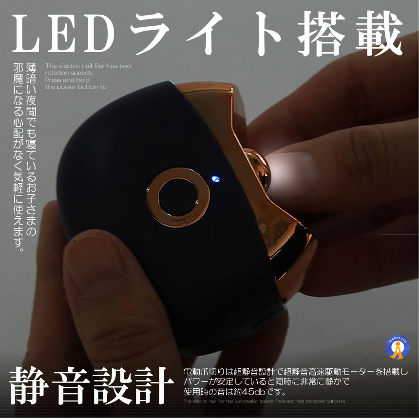 電動 爪切り 2in1 爪切り 研磨 やすり USB充電式 LEDライト 2段階強さ調節 ベビー 赤ちゃん 日本語説明書 TSUMEKIREI