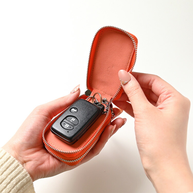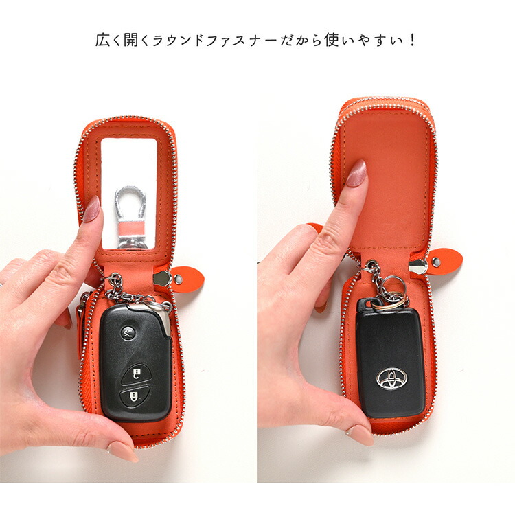 ラウンドジッパーになっているので大きく開き、中のスマートキーの付け替えもしやすい!