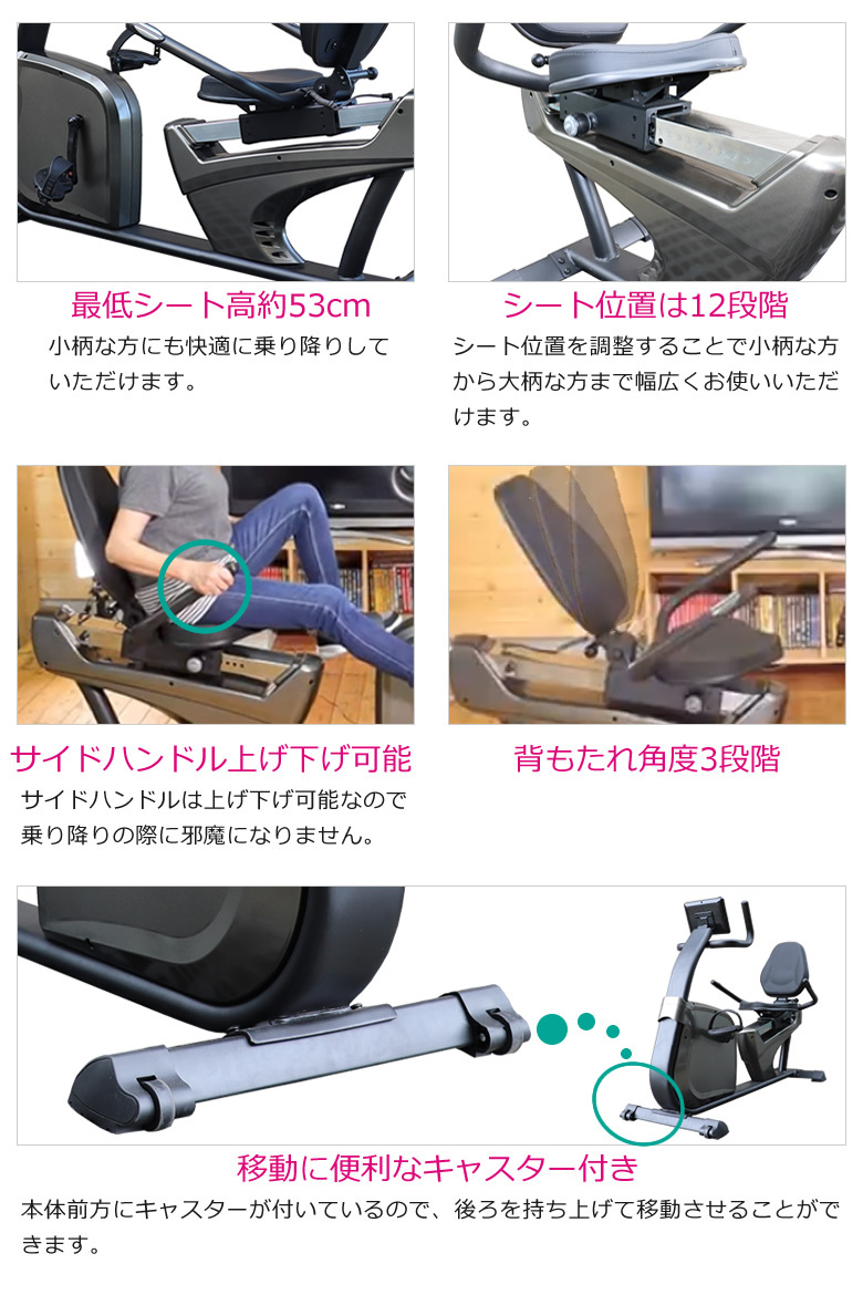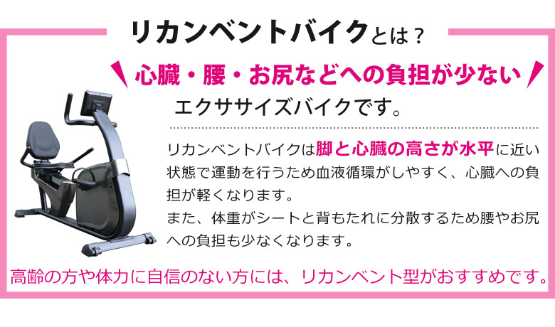 1.脚と心臓の高さが水平に近い状態で運動を行うため血液循環がしやすく心臓への負担が軽くなります。