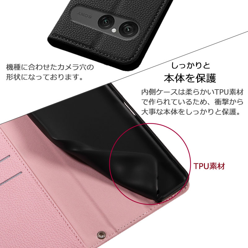 シンプルかつクールで、仕事用(ビジネス)としても使用可。持ちやすいスリムカバーで耐衝撃に優れスマートホン本体を保護(落下防止)するエクスペリア携帯カバーです。