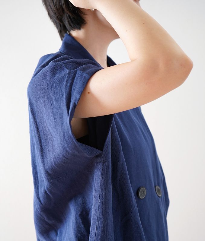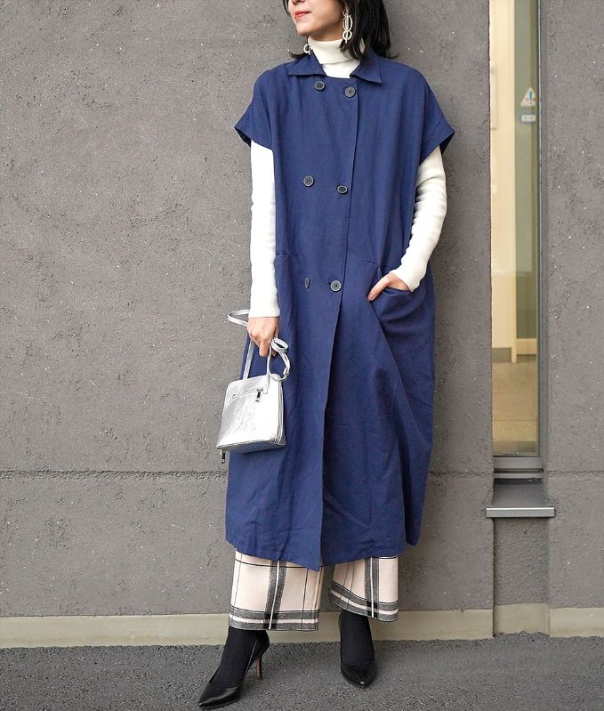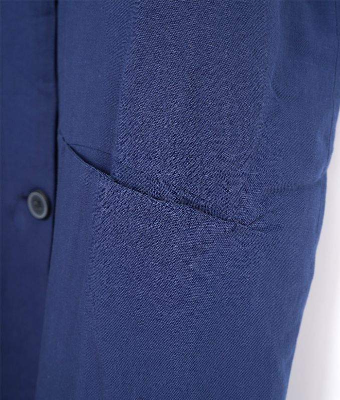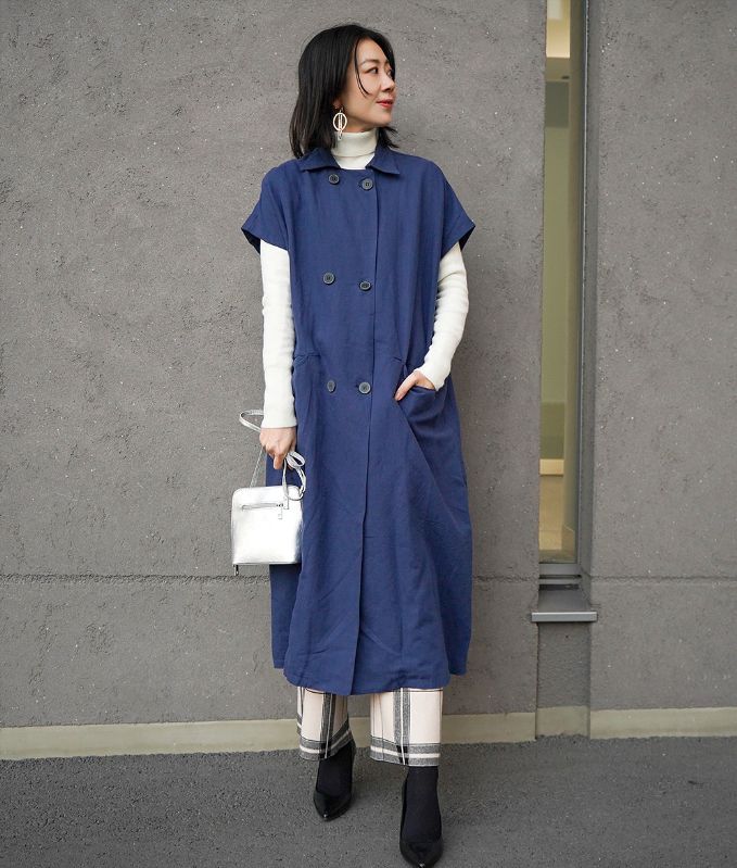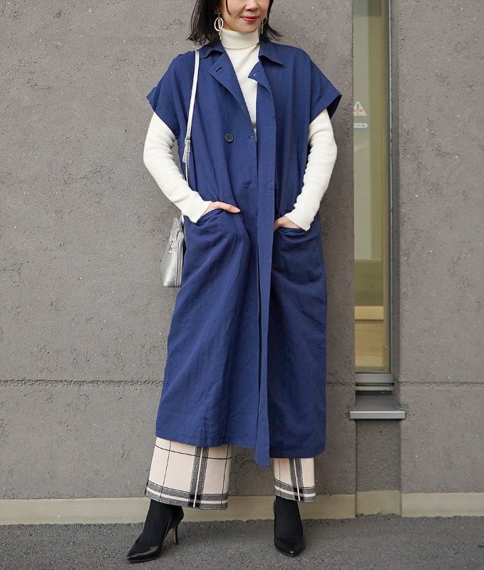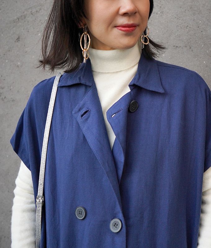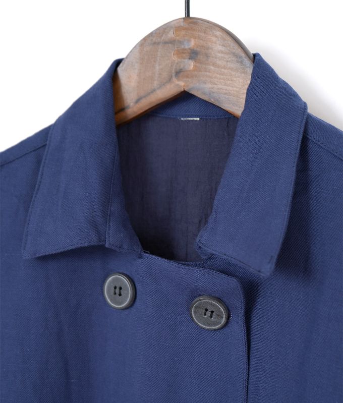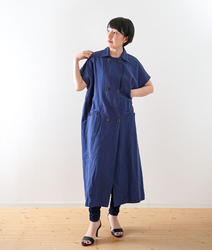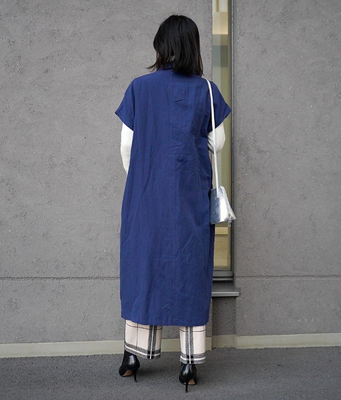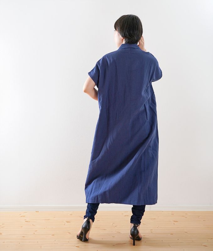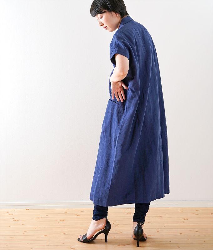 クールで大人な着こなしになるロングシャツワンピースが入荷しました。パッと目を惹くきれいなブルーカラーです。ゆったりとしたビッグボクシーシルエットがトレンド感とリラックス感のある一枚。ジレのように前ボタンを全て開けて、さっと羽織るだけでマニッシュな雰囲気になります。ハイネックニットや白シャツに合わせてもお洒落!さらりとしたリネンコットンのツイル素材で仕上げ、裏ありの丁寧なお作りになっています。夏は一枚でワンピースとしてもお使いいただけます。