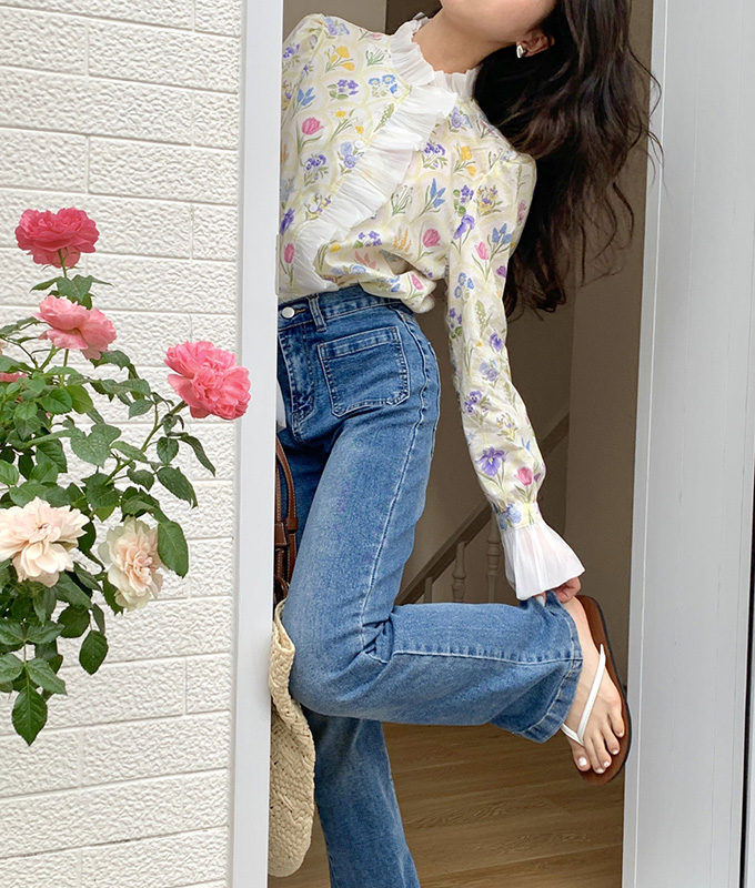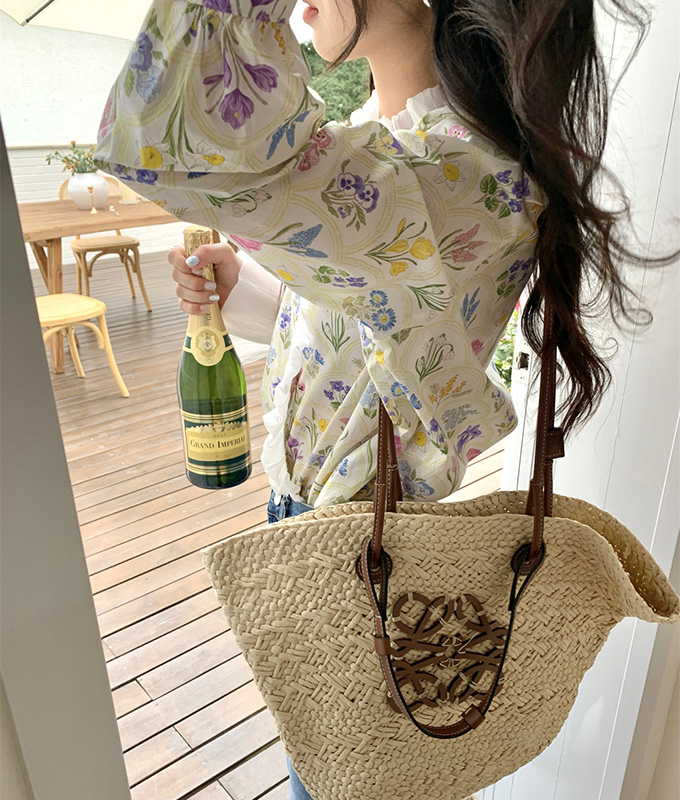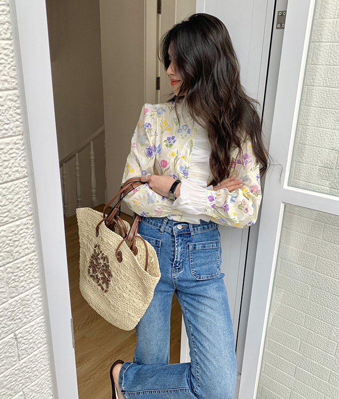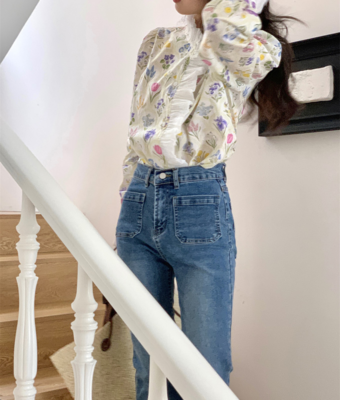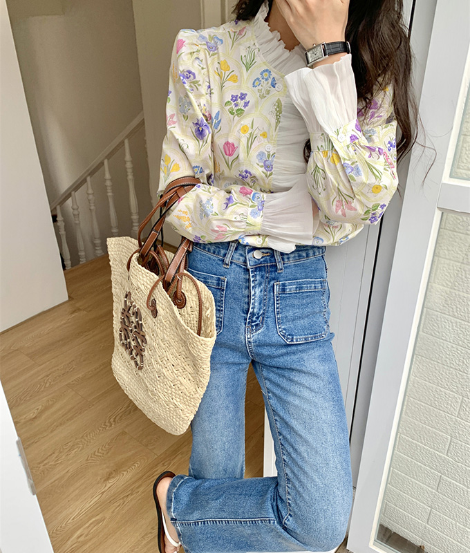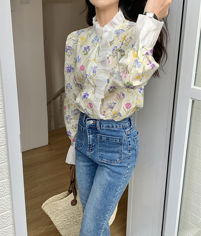 豪華なラッフルと可憐なお花模様が唯一無二なフェミニンブラウストップス。