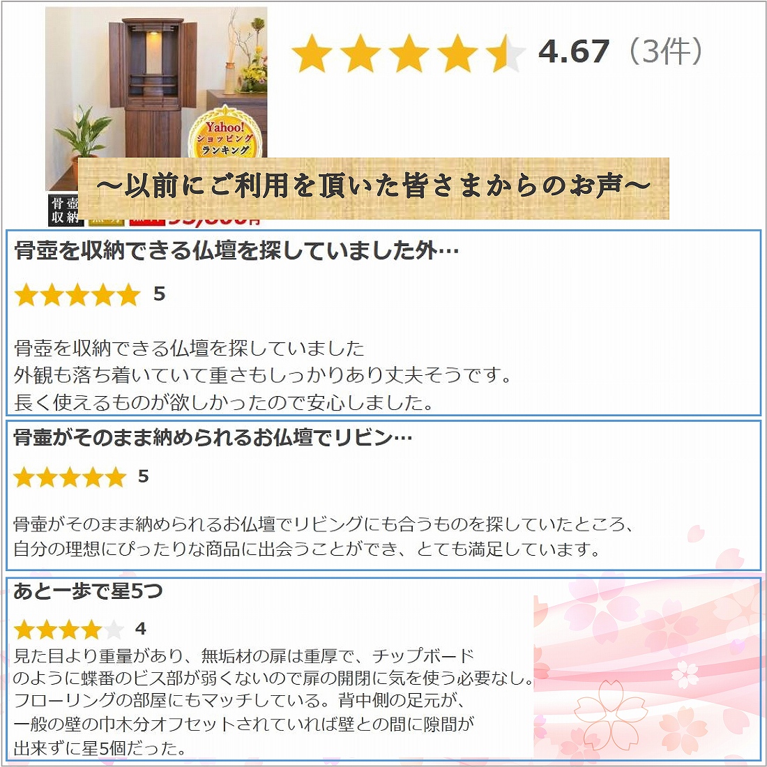 棚を三段やお骨の収納スペースを設けながら、サイズはコンパクトに抑えました。