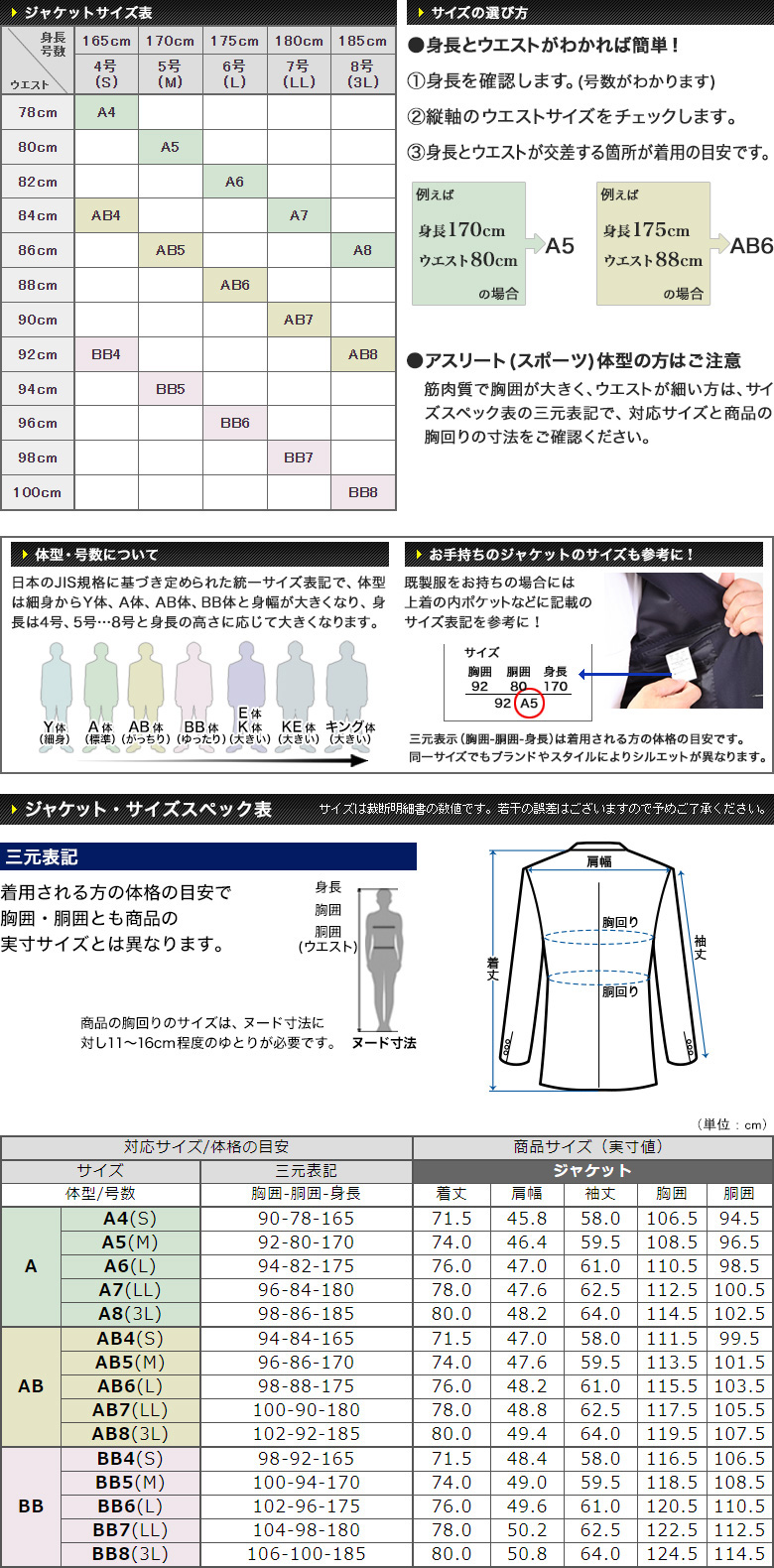 AB4(S) AB5(M) AB6(L) AB7(LL) AB8(3L)