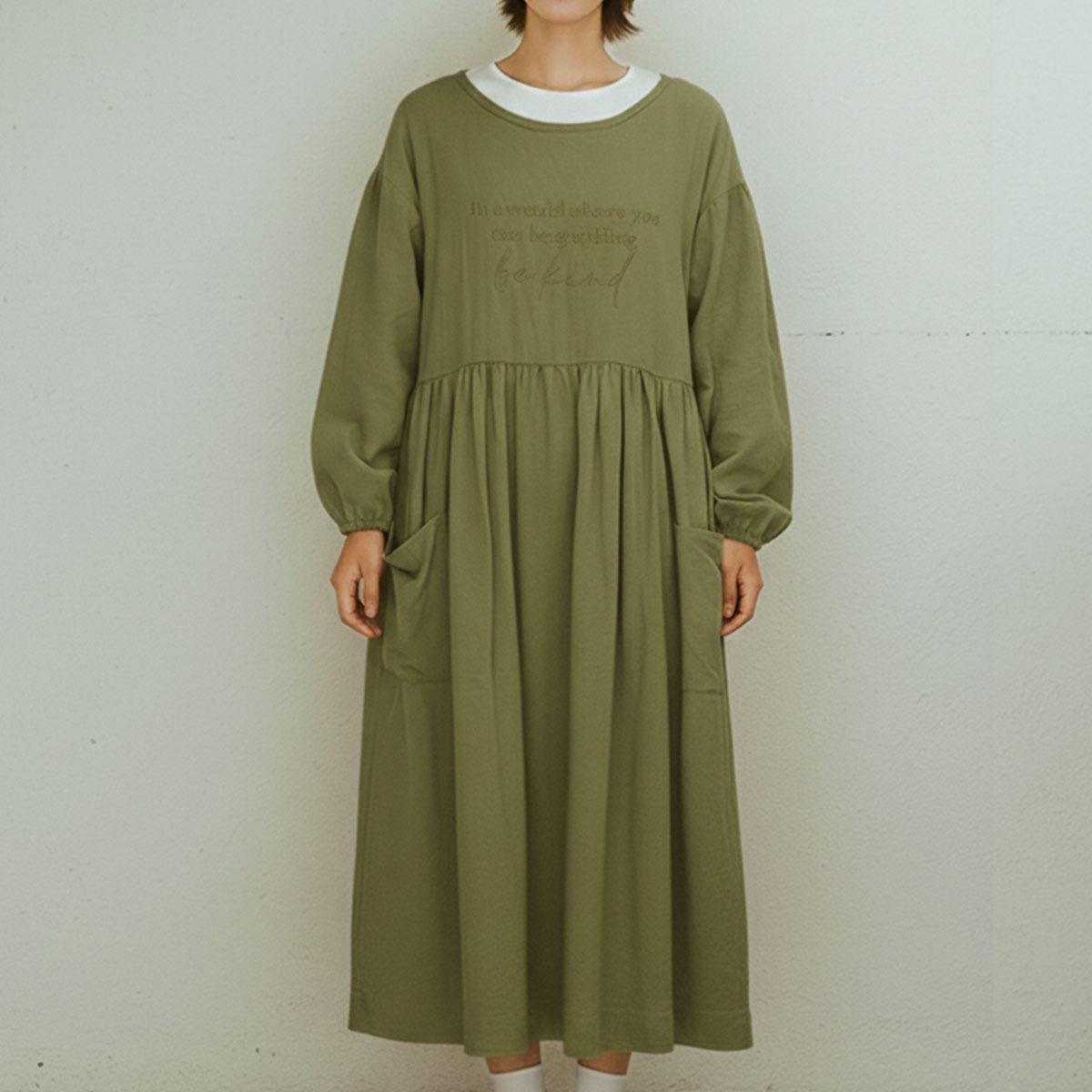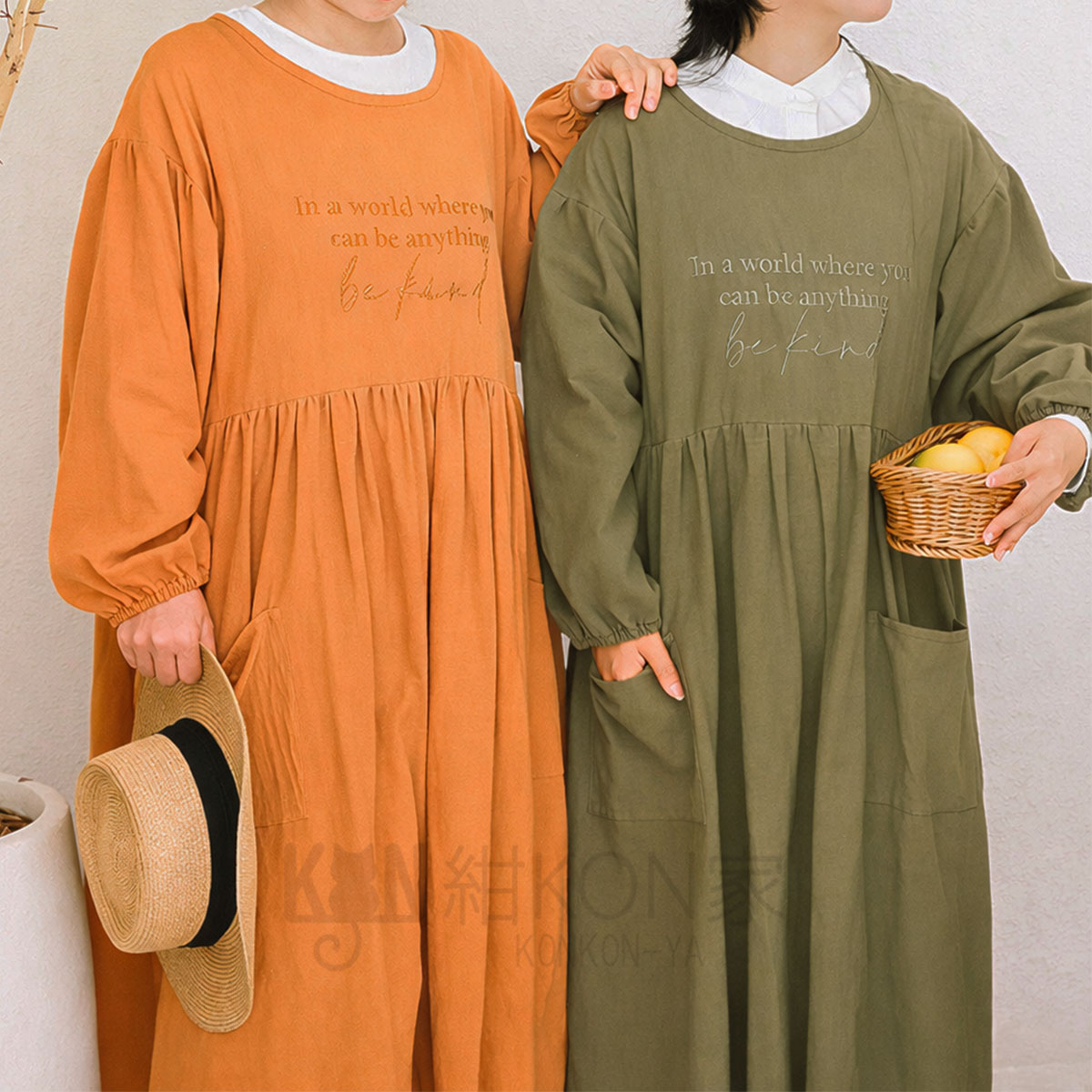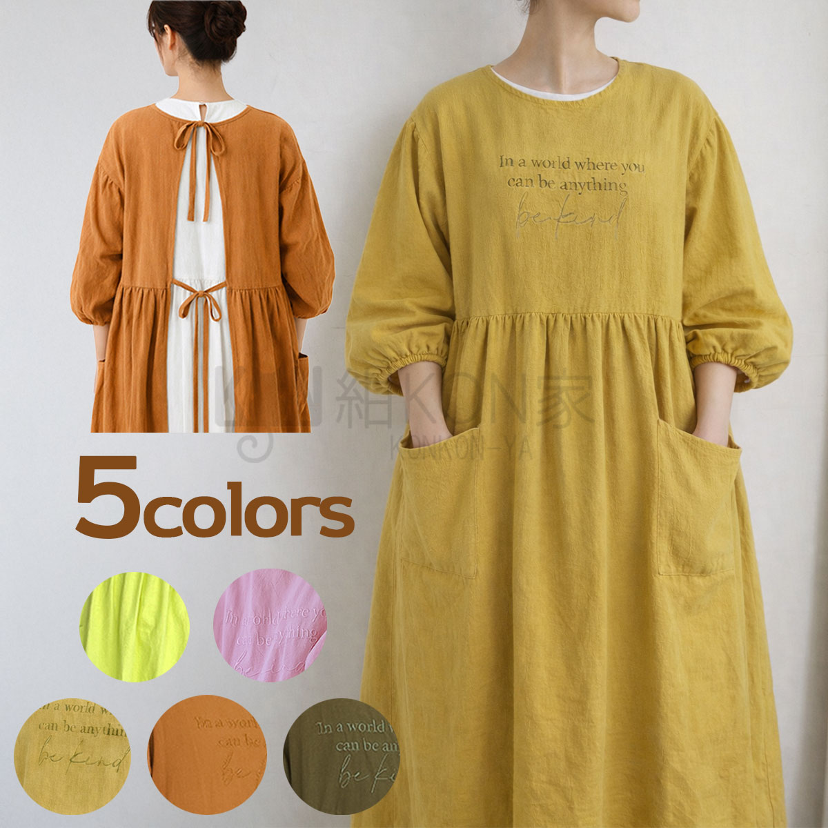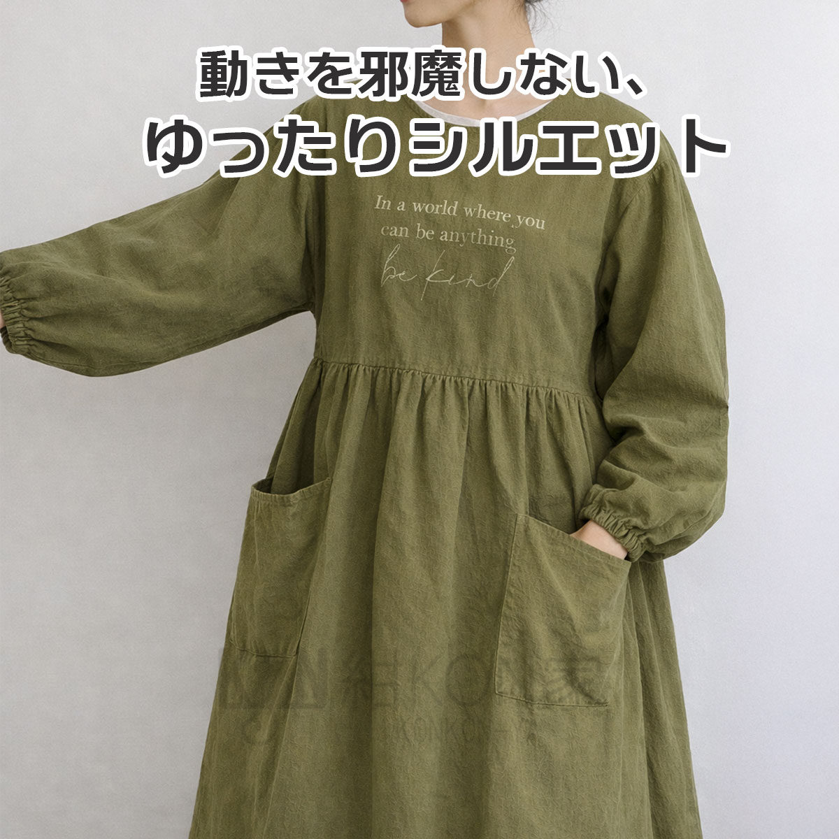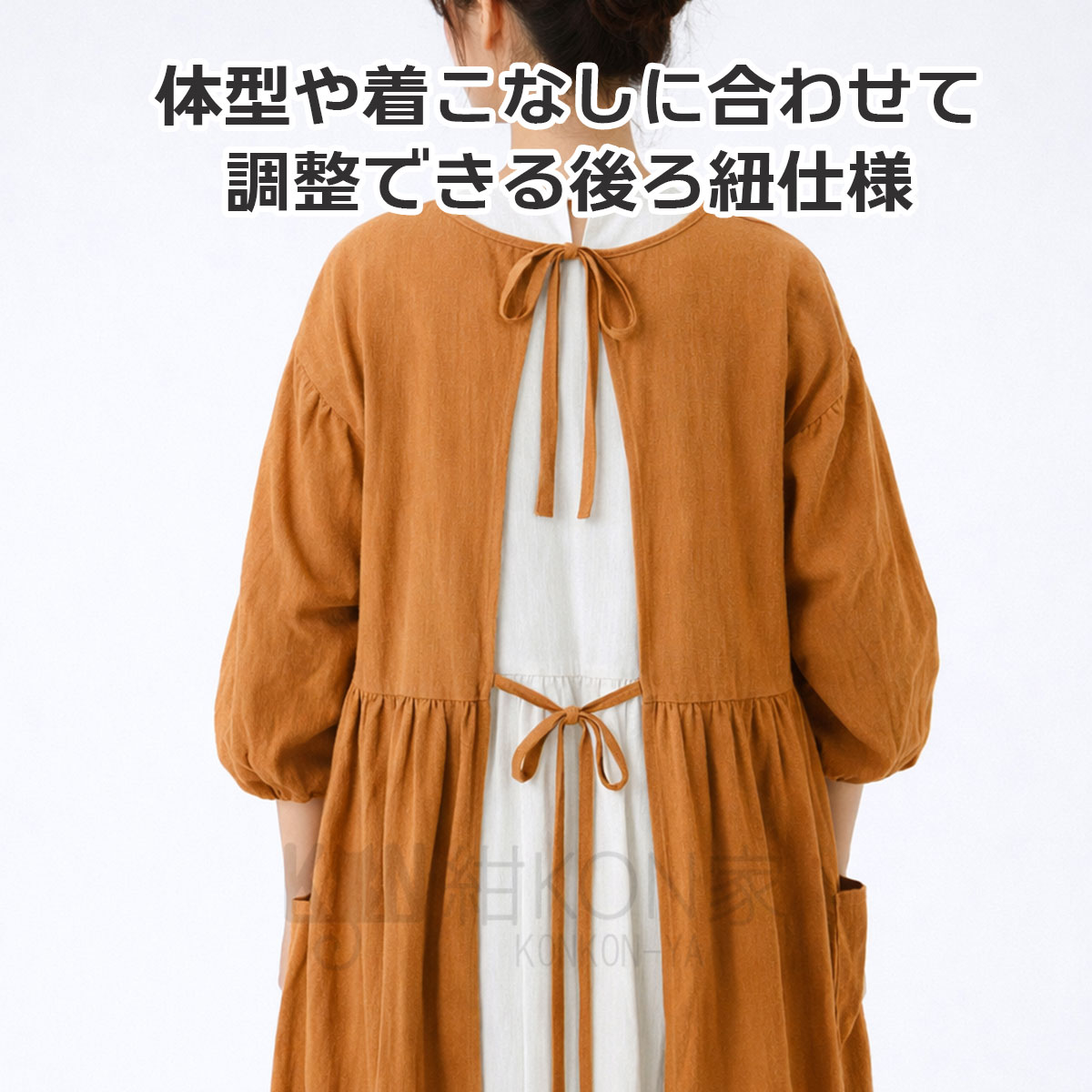 コットンリネン ロング 保育士 キッチン かっぽうぎ ゆったり