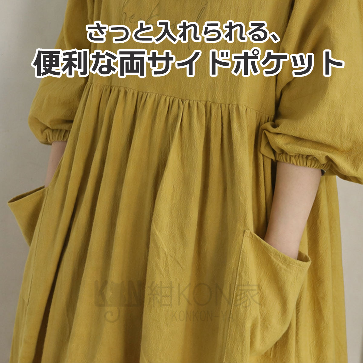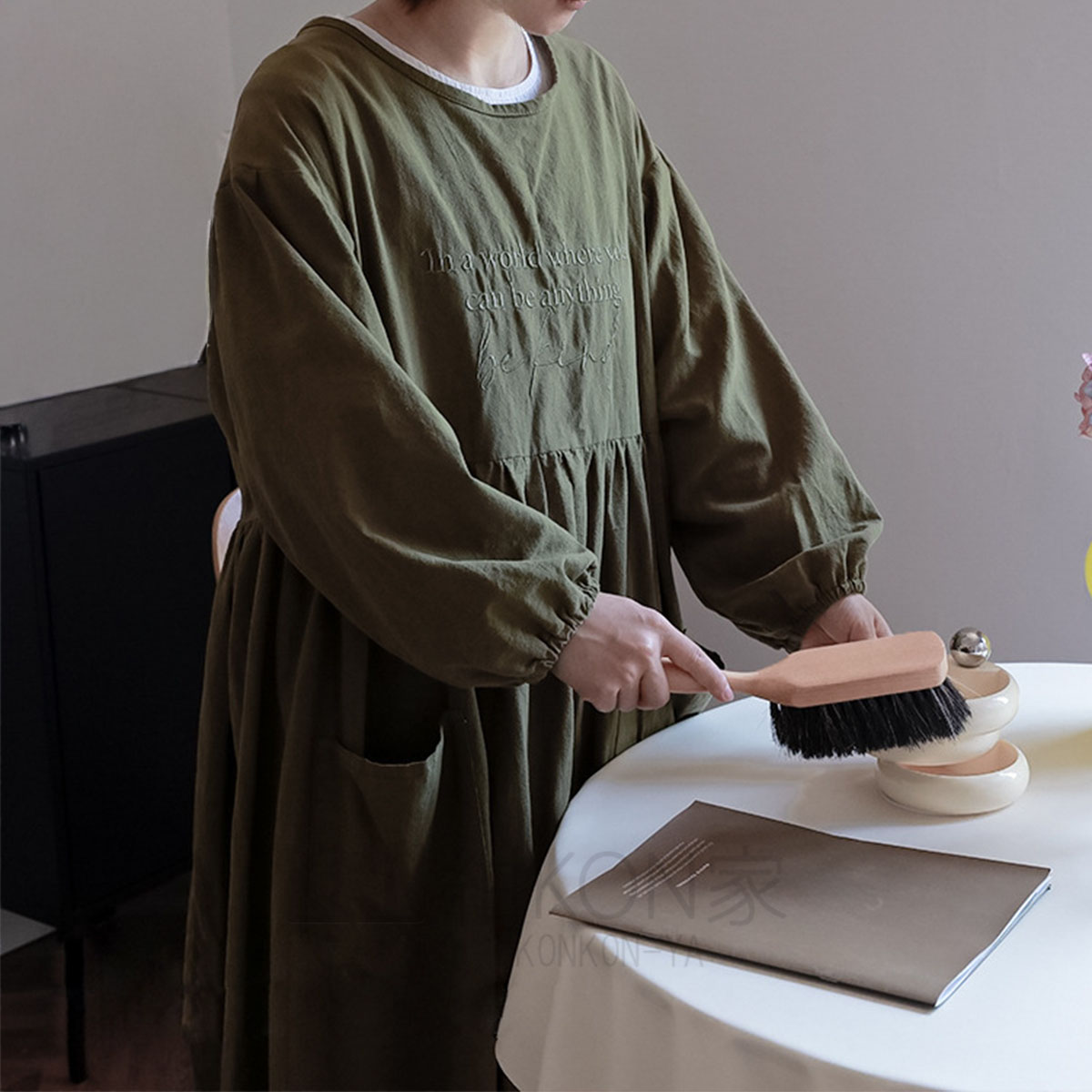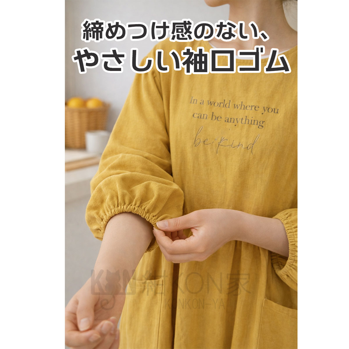 割烹着 エプロン かっぽう着 おしゃれ 北欧 かぶり 大きいサイズ 大人 可愛い かわいい 長袖 綿 麻 ロング丈 レディース ポケット付き