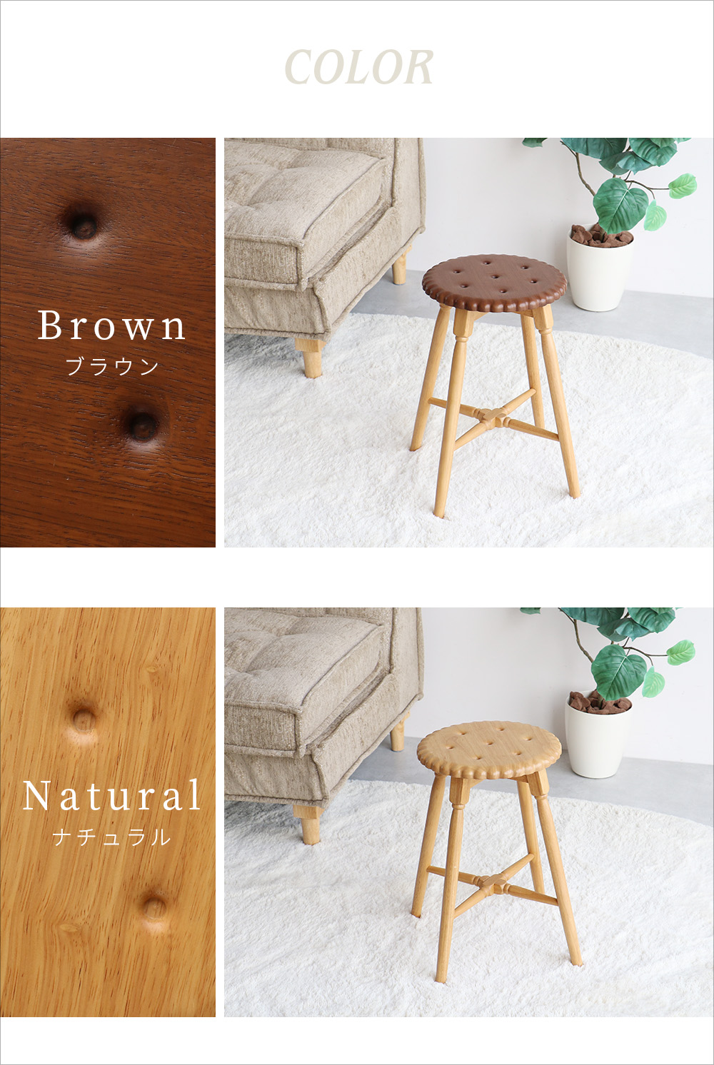 ブラウンとナチュラルの2色を取り入れて、お部屋を可愛く演出し、