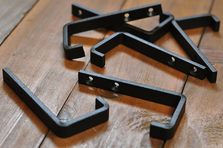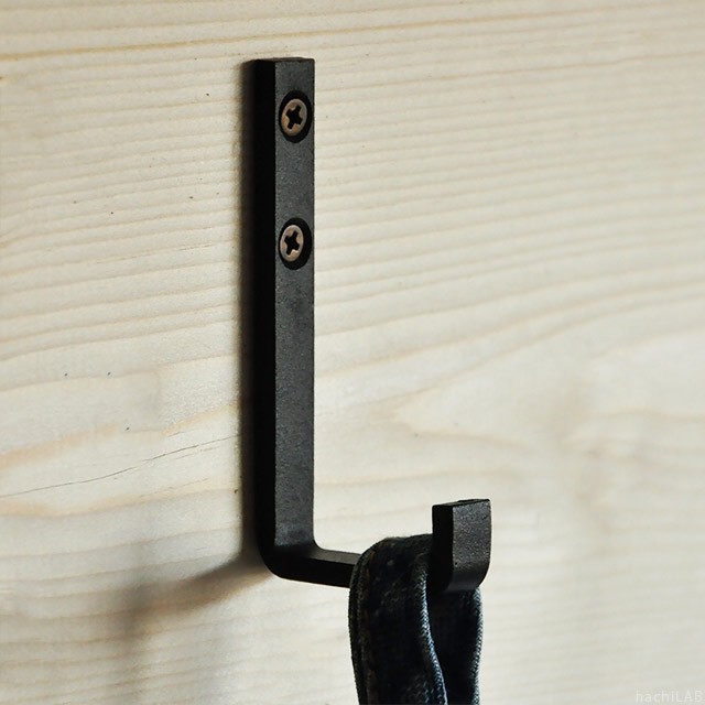 四角い鉄棒を曲げて作ったシンプルな壁掛けL型フック金具。