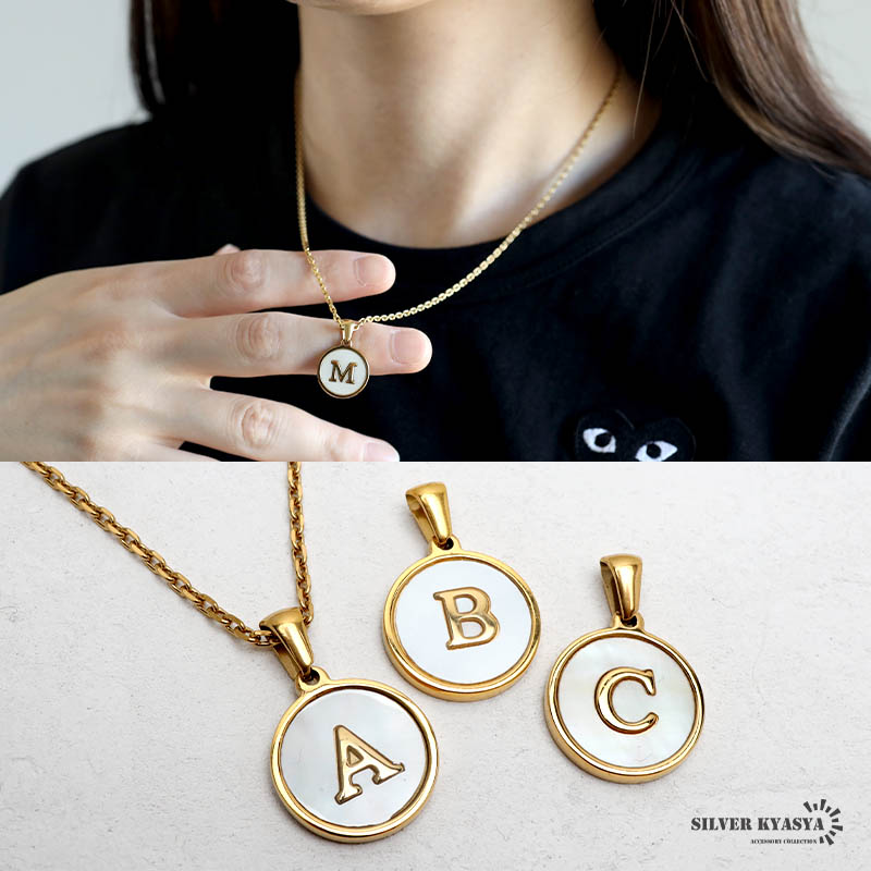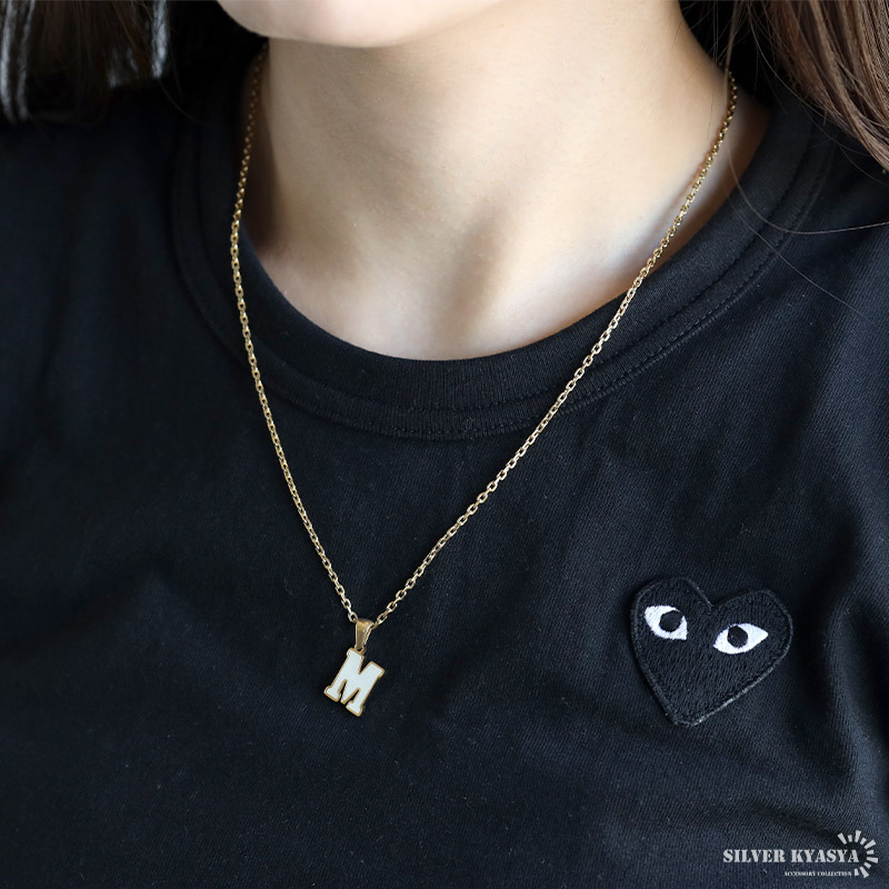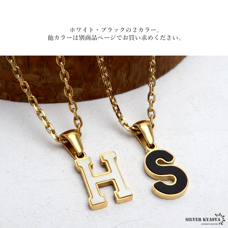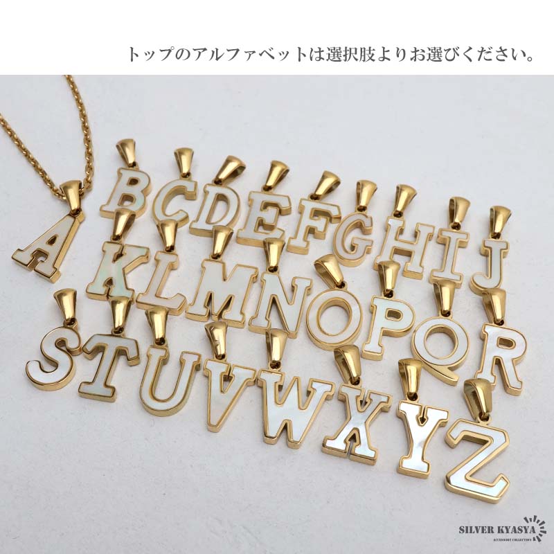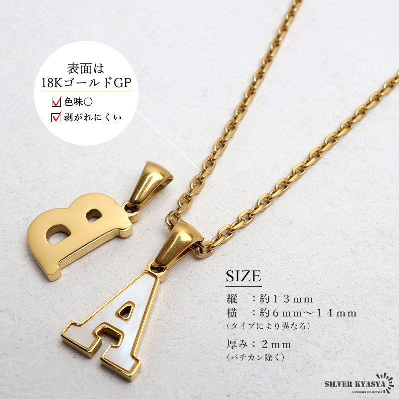 イニシャルネックレス アルファベットネックレス ゴールド ホワイト シルエット ペンダント ステンレス 18KGP あずきチェーン 金属アレルギー対応 爆買