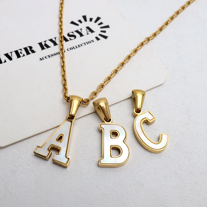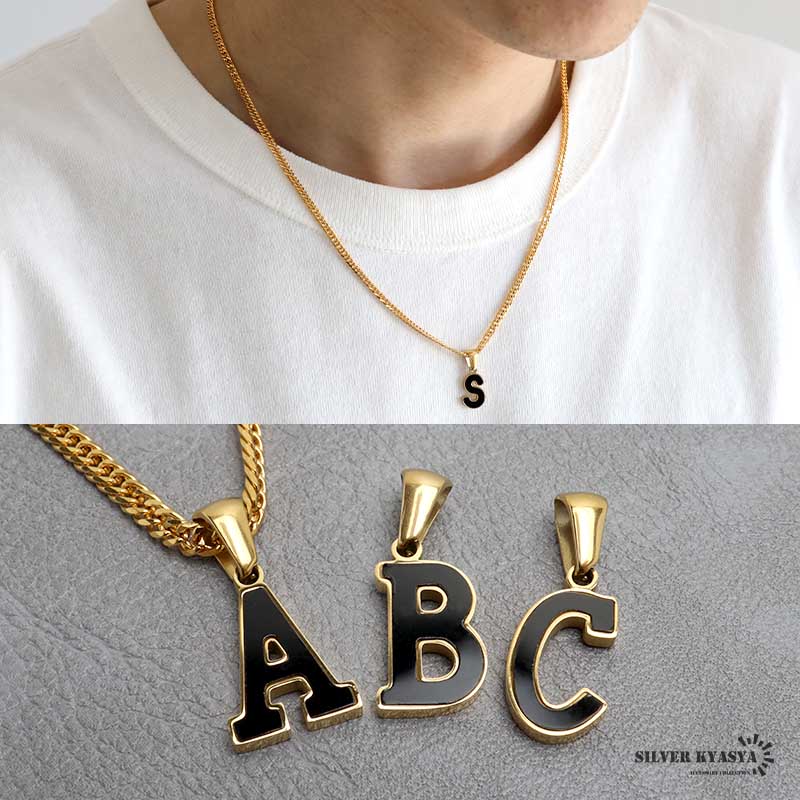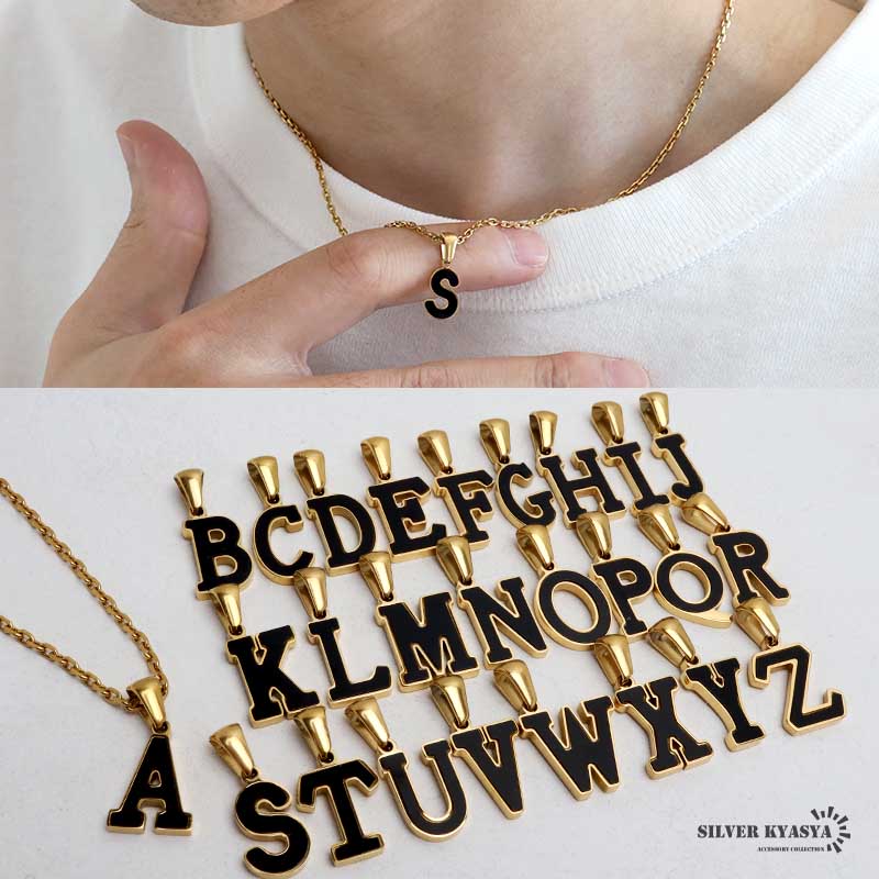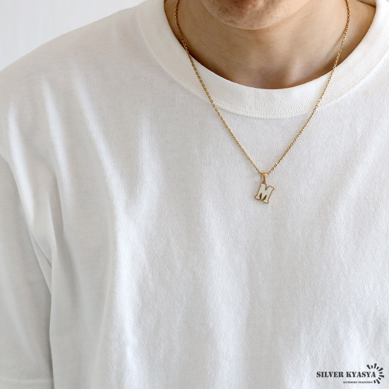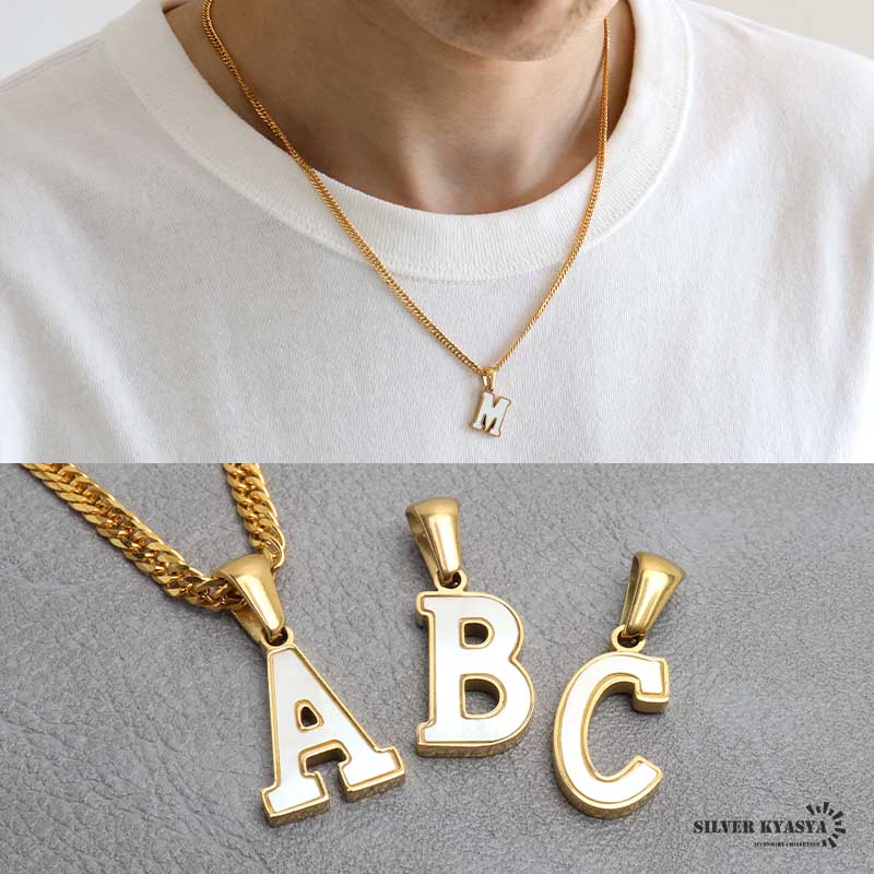 イニシャルネックレス アルファベットネックレス ゴールド ホワイト シルエット ペンダント ステンレス 18KGP あずきチェーン 金属アレルギー対応 爆買