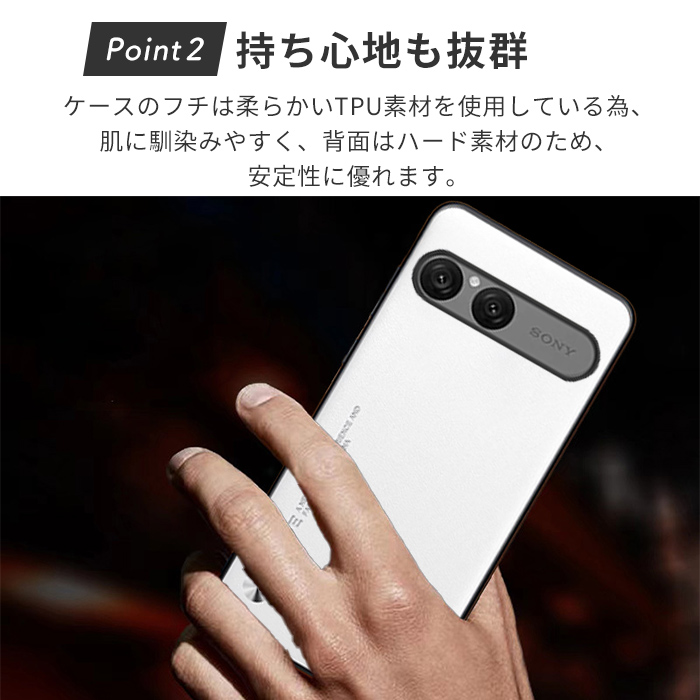 ・ケースのフチは柔らかいTPU素材を使用している為、肌に馴染みやすく、背面はハード素材の為、安定性に優れます。