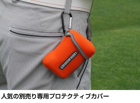 オプションとして、レーザーアキュラシー PINPOINT Mシリーズ・Lシリーズ にご使用いただける専用のカバーをラインナップ。この専用カバーを付けておけば、レンズフタを外してすぐにカバーを付けたまま計測できます。本体にフィットするタイプなのでコンパクト。腰ベルトやゴルフパンツなどに簡単に取り付けできるフックが付いているので、プレー中レーザーアキュラシーを常時携帯できます。クッション性がある素材でレーザーアキュラシーを汚れや傷から守ります。