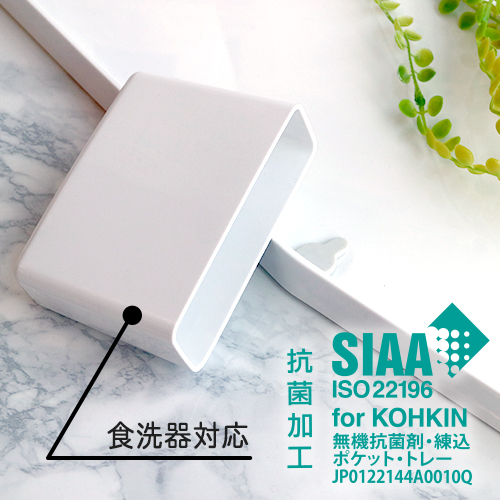 SIAA抗菌仕様のトレーとポケット【SIAAマーク認定商品】 抗菌加工を施したトレーと小物ポケットで、水周りでも清潔・安心にお使いいただけます。