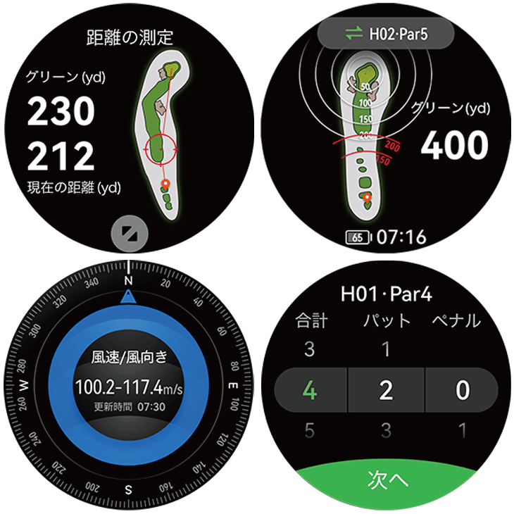 加速度センサー / ジャイロセンサー / 磁気センサー / 光学式心拍センサー / 気圧センサー / 温度センサー