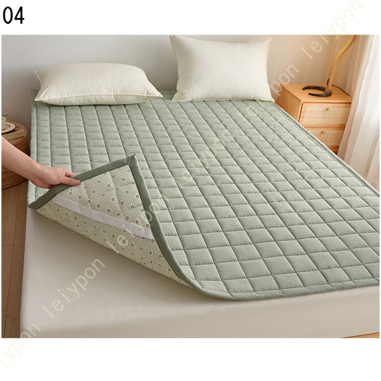 【着脱簡単・ずれにくい】敷パッドの裏面にすべり止め加工がされ、四隅にもゴムバンドが付いていて、マットレスや布団にしっかり固定、寝返りしてもずれにくいです