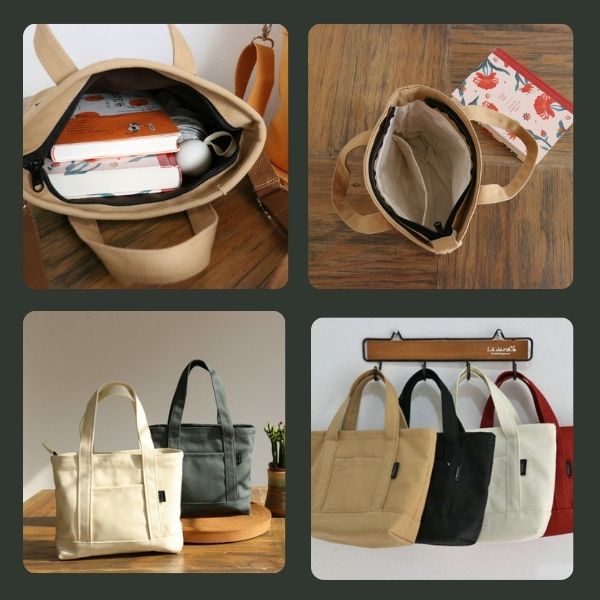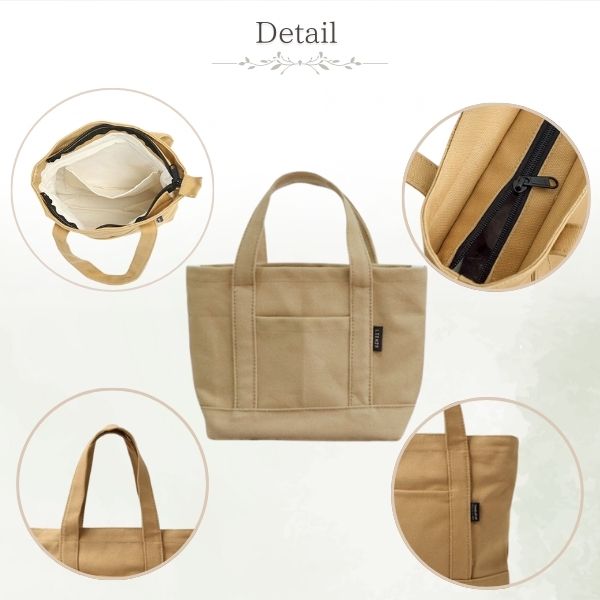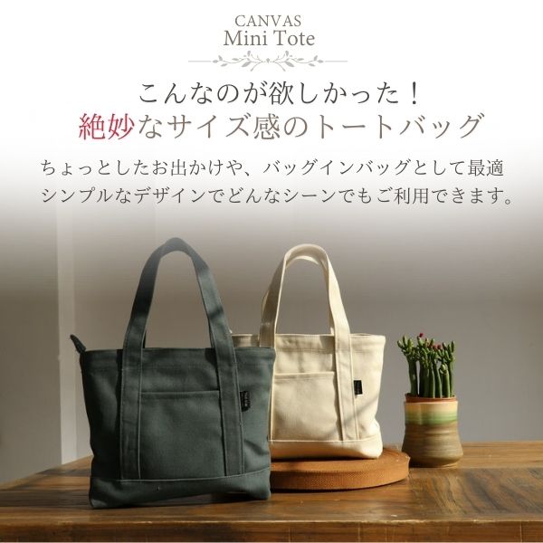 トートバッグ 帆布 ミニトートバッグ ミニトート キャンバス ファスナー付き チャック おしゃれ レディース 軽量 収納 布 メンズ 黒 白 小さめ 手提げ
