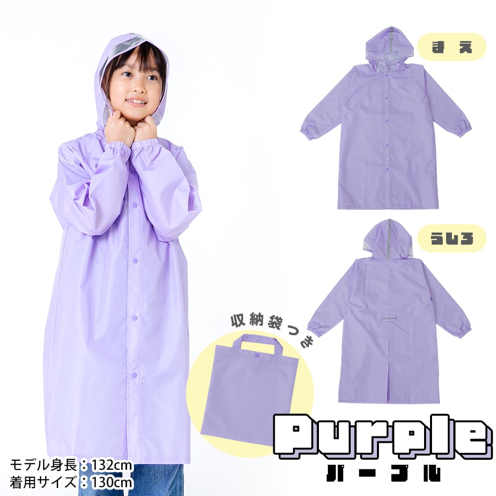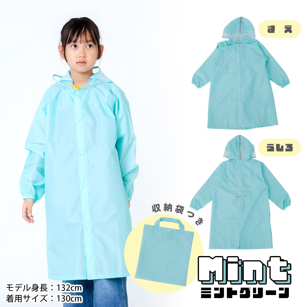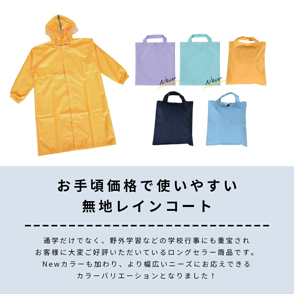 通学等に使いやすいシンプルな無地のレインコート。暗い場所でライトが当たると光る反射テープ付きで安全面も考慮。他にもこだわりいっぱい♪